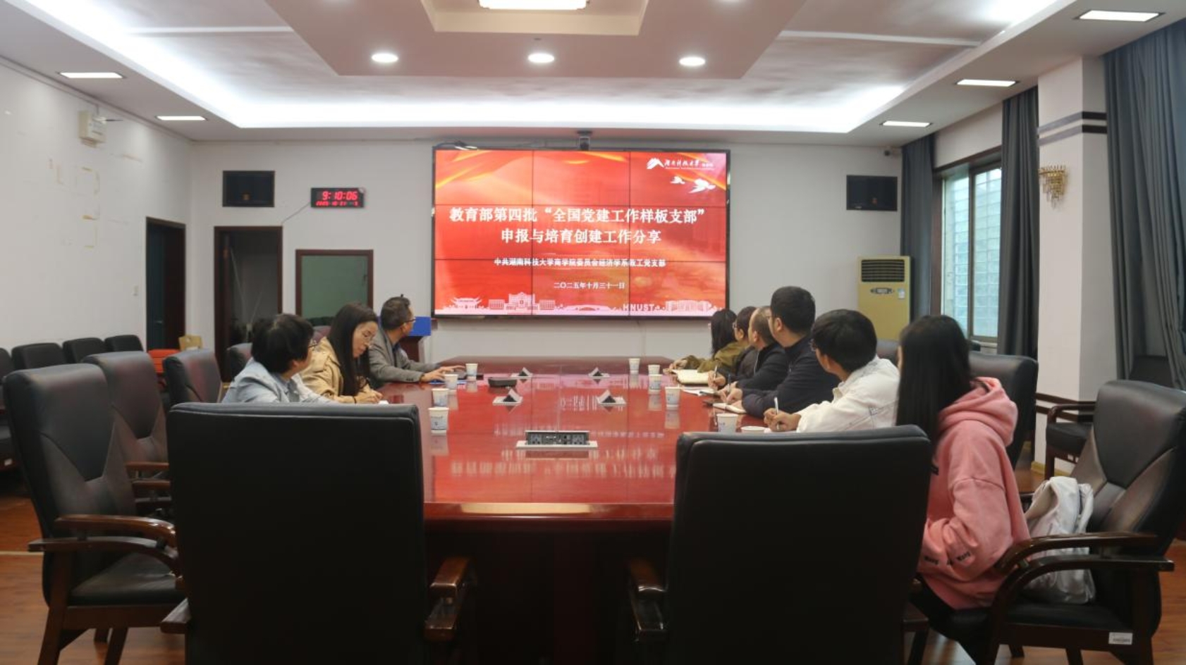 会议伊始,王鹤对土木工程公司道桥系教工党支部一行的到来表示热烈欢迎,并围绕“党支部情况”“申报工作”“建设进展”“党建优秀案例申报”及“思考与启示”五个维度深入分享。他介绍,yl23455永利经济学系教工党支部在培育创建全国党建工作样板支部过程中,聚焦“五个四”工程(强化“四方抓好”、完善“四个机制”、做优“四个强基”、创优“四个融合”、加强“四方联动”),不断创新基层党建方法与制度机制,以高质量党建引领经济学系内涵式发展,推动公司党委整体创优,为党建与学科“双高质量”建设赋能。