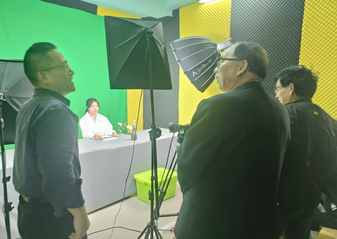 活动过程中,实习检查小组一行人听取基地负责人潘竟成和赵振军关于实习基地的合作机制、团队队伍和运行管理等建设情况的详细汇报,参观实习基地的场地设备与工作环境。实习指导老师王琼和张群卉为大家认真介绍员工实习计划、实习内容、项目开发、员工实习反馈以及企业实际需求融入专业课程设置等情况。实习员工通过现场直播演示的方式,生动展现他们的实践操作和创新能力。