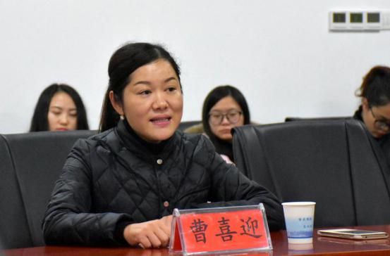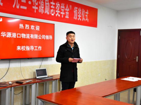 湖南华源港口物流有限公司副总经理曹喜迎在仪式上发表讲话,在讲话中她向25位获奖研究生表示祝贺,并简明扼要地介绍了“九三学社”的起源及发展。在仪式上曹喜迎提到“九三·华源励志奖学金”这一份奖励是一份激励、是一份责任、更是一份社会人士对莘莘学子的浓浓爱意,表达了对获奖员工之后在学习生活上的期望。