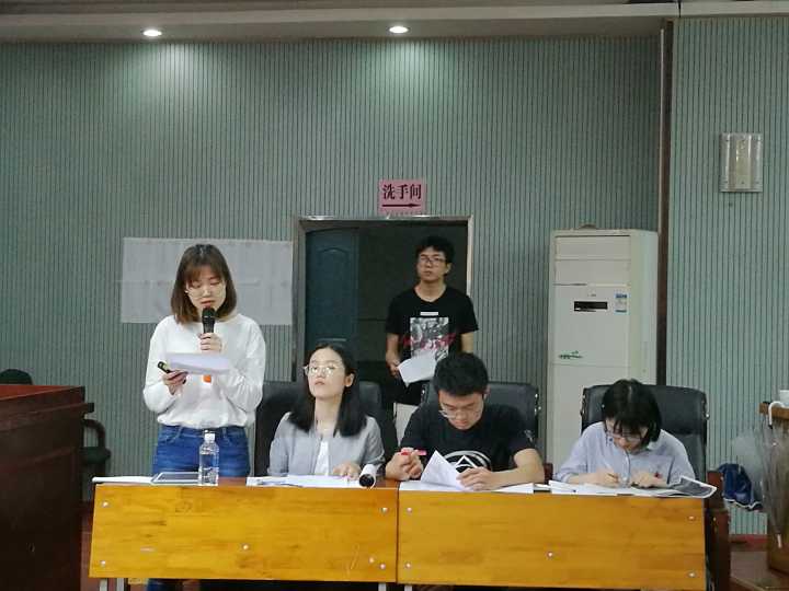 贺胜兵教授致开场词,在同学们的热烈掌声中比赛正式拉开帷幕。两位主持人首先介绍展示规则及4支研究生队伍,分别为“今年一定发财”队、“学习强国”队、“孬嫑钱”和“今晚吃鸡”队;随后4支队伍现场进行抽签确定案例展示顺序。本次案例采用辩论赛的形式,由4支队伍两两PK进行团队案例展示及回答对方辩友提问,完成现场师生问答。