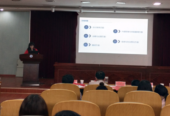 颜剩勇教授介绍赛事流程,6支研究生参赛队伍均围绕乐视报表迷局和会计“财技”这一案例进行探讨,完成PPT展示和师生问答。各参赛队伍在赛前对这一案例进行了充分的调研和分析,用所学专业知识来解决乐视网的发展和财务报表之间存在的问题。