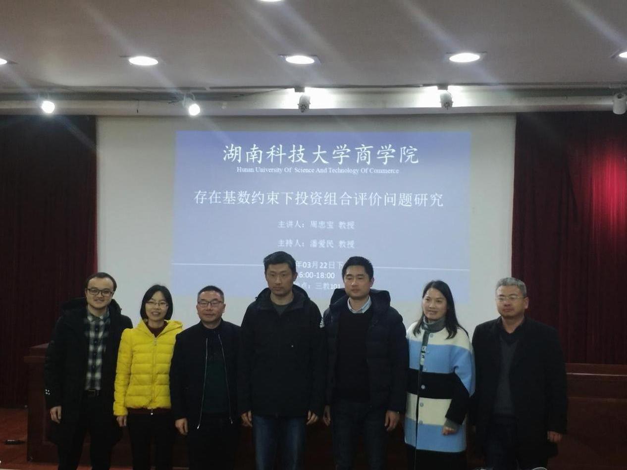 2019年3月22日下午4点,湖南大学“岳麓学者”特聘教授、工商管理公司副经理、博士生导师周忠宝教授公司讲学,他演讲的题目是“存在基数约束下投资组合评价问题”。报告在三教101学术报告厅举行,yl23455永利副经理叶文忠主持了报告会,副经理邓淇中及学院部分老师及全体研究生及参加了此次讲座。