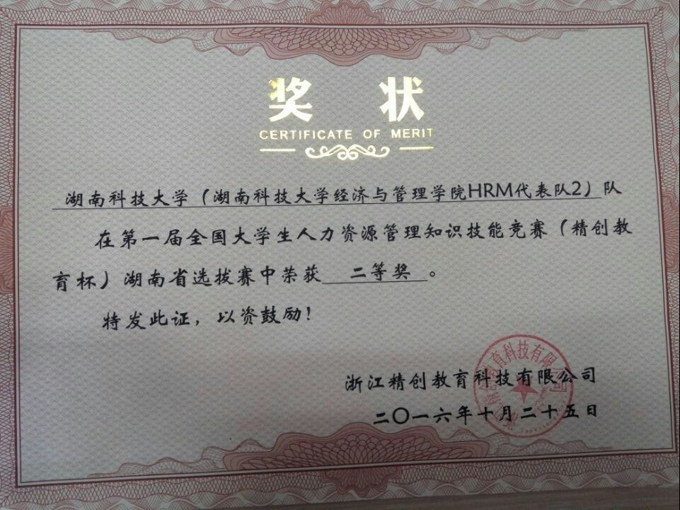 10月23日, 由浙江精创教育科技有限公司举办的第一届全国老员工人力资源管理技能竞赛湖南省选拔赛拉开战幕,公司经济与管理公司人力资源管理系派出12名员工分两队参加比赛,夺得一个二等奖和一个三等奖。