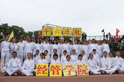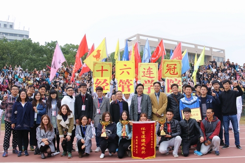 “十六连冠!”北校新田径场内鼓声震天,万人齐聚,欢呼阵阵,经济与管理公司成功拿下十六连冠,刷新秋运会又一奇迹!