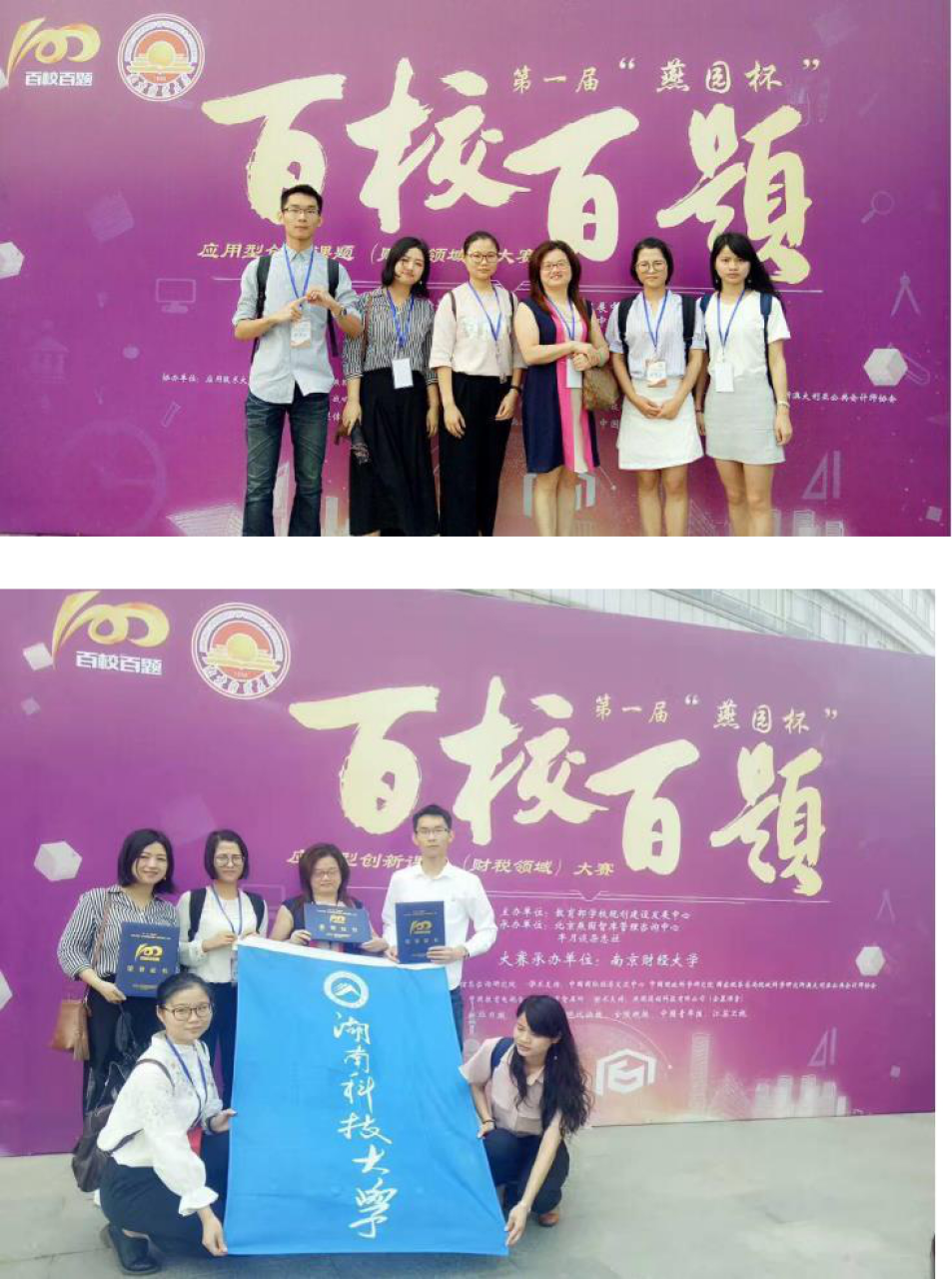 2017年 6月1日,由公司刘卉、蒋佩玲等 6名同学组成竞赛团队参加了第一届全国大学“百校百题”应用型创新课题(财税领域)大赛复赛,并晋级决赛。陈湘州、李启平老师荣获“优秀指导老师”荣誉称号。