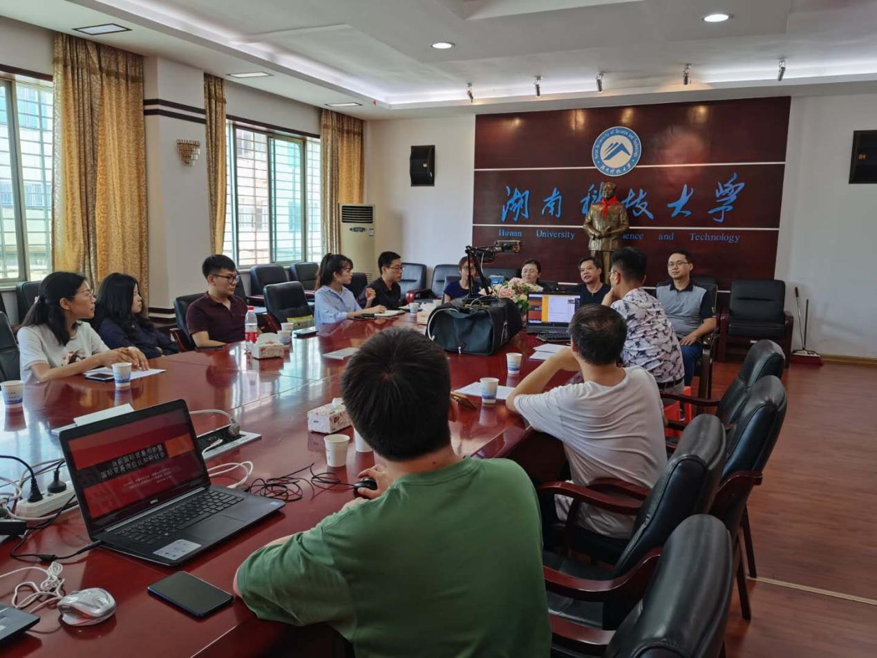 2020年6月12日下午,yl23455永利国贸系与经济系于三教301会议室,联合召开“当前国际经贸形势暨国际经贸工作岗位认知研讨会”。参加研讨会的嘉宾有:湘潭市贸促会法律服务部郭娟副部长、湘潭市浩通公司供应链副总沈万玲、生易圈教育咨询副总刘宇。yl23455永利张志彬副经理、国贸系和经济系部分教师出席研讨会,向志国老师主持嘉宾访谈过程。研讨会全程采用网络直播的形式展开,2019级国贸专业通过QQ群课堂观看、2016级国贸和2016级经济学则采用智慧树直播课方式聆听了本次研讨会。
