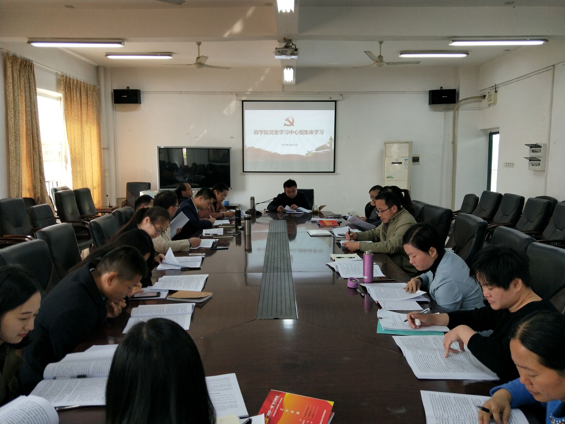 2017年10月31日上午,公司党委学习中心组全体成员在三教411会议室集体学习十九大精神,本次学习由党委书记潘爱民同志主持。