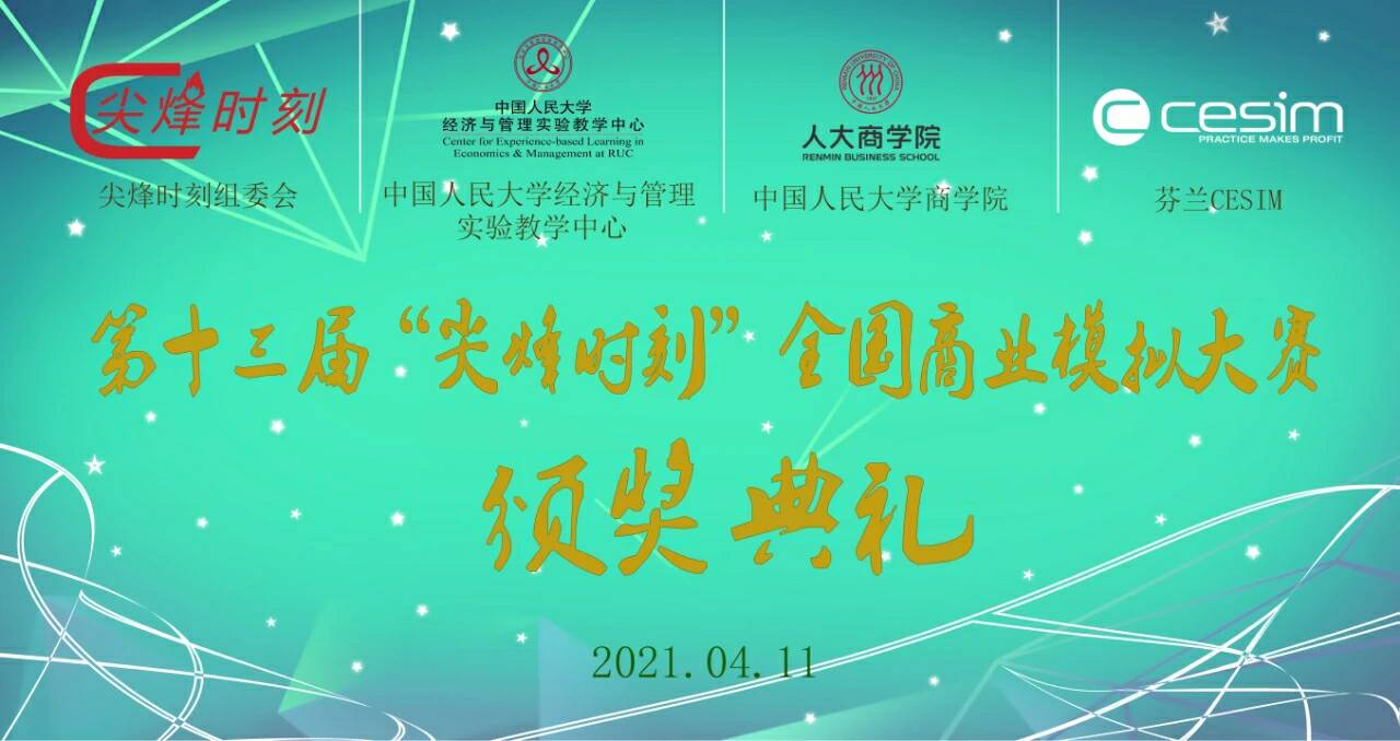 公司代表队荣获第十三届全球“尖烽时刻”商业模拟大赛全国一等奖