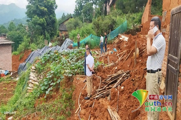 图为调研小组跟随岑日旗书记落实灾后恢复工作