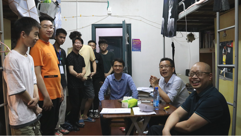 下寝过程中,老师们详细了解同学们的就业情况,耐心倾听同学们关于未来的困惑以及现在面临的困难。谈到毕业季的迷茫和初入社会的压力,班主任胡黎明向同学们分享了自身工作经历,他说,毕业代表校园生活的结束,也代表人生新阶段的开始,感受到压力是正常的,但大家要正确对待这份压力,理性思考自身发展愿望、慎重规划未来发展路径,这样才能更快适应新的生活。班主任曾剑云与同学们探讨了就业选择和职业发展的问题,解答了毕业生在求职方面的困惑,他希望同学们可以发扬终身学习的意识,不断丰富自身内涵,在今后的工作中走得更稳,飞得更高。系主任周志强则告诉同学们,有任何想法都可以跟老师们交流,有任何困难老师们都会和大家一起面对。公司会给予毕业生最大的支持,帮助大家顺利步入人生的新阶段。其他老师也和同学们进行了深入交流,对同学们表达了真挚的祝福,希望毕业生们能够乘风破浪,乘梦远航。