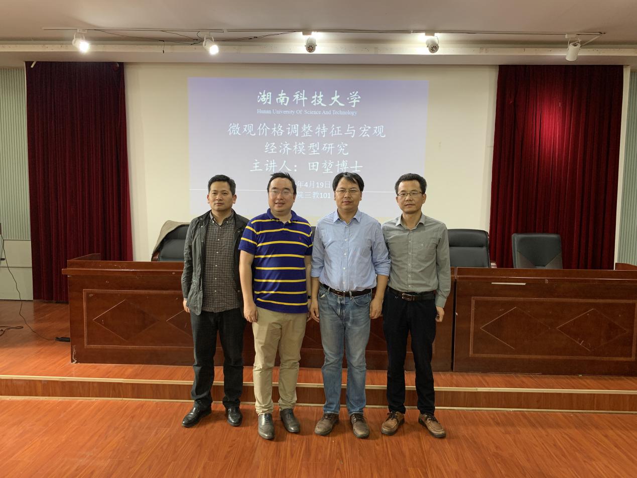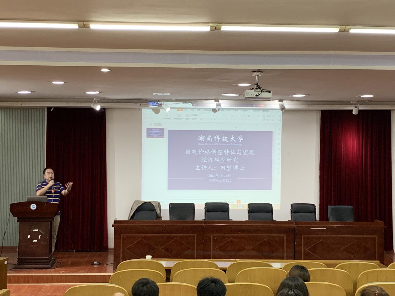 2019年4月19 日(星期五)下午14:30,由公司举办的主题为“微观价格调整特征与宏观经济模型研究”的学术报告在三教101学术报告厅举行,主讲嘉宾为英国安格利亚大学田堃博士。本次讲座由贺胜兵副经理主持,yl23455永利部分老师和在读博士、硕士研究生参加了讲座。