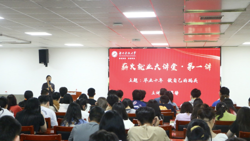 4月26日下午,由人才招聘处主办、yl23455永利承办的“薪火就业大讲堂·第一讲”于敏行楼B419报告厅顺利开展。公司2009级市场营销专业优秀毕业生,字节跳动巨懂车CNR大客户业务部全国总经理黎静以“毕业十年,做自己的码头”为题,分享了其在就业上的丰富经验和独到见解。分享会由公司党委副书记王鹤主持,各公司师生代表参加。
