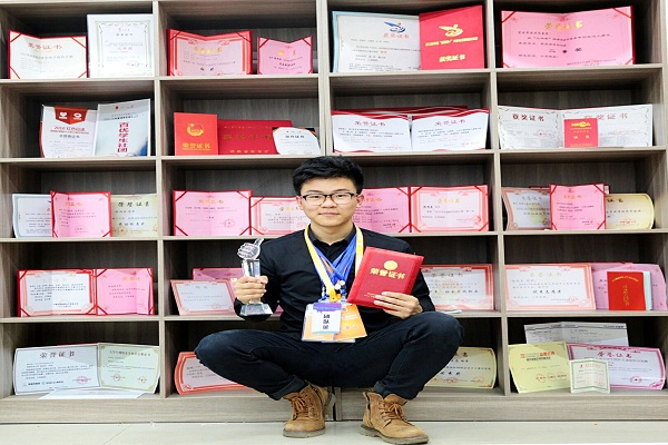 “台上一分钟,台下十年功”。获得众多殊荣的陈旭东,付出的努力也是常人所不及的。他不羡慕安逸,因为他追求的是一个能够让自身价值得以实现的舞台。在提及他印象最深刻的“互联网+”比赛时,他回忆:“那时候每天不停都在地为初赛、复赛做准备,每天都忙到凌晨一两点才睡觉。”过程虽然累,但是陈旭东却从未抱怨。相反,他借此不断锤炼己身,磨练意志,“因为我喜欢,我渴望!”这简练的一句话是陈旭东一直以来的参赛信念。