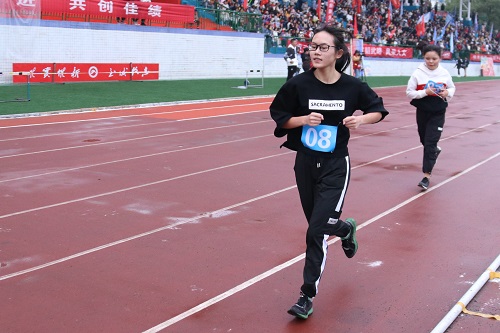 16:24,女子5000米比赛开始,这是一番耐力与毅力的比拼,每一位“女将”都是巾帼不让须眉,咬紧着牙关挑战着自我,最终yl23455永利田欣以25′22″28的成绩斩获头名。田欣说:“没有想过会拿第一。在比赛开始前,我有着前所未有的紧张,因为我的目标,是领奖台。只要有人在我前面,我就努力去追,虽然很累,但看到公司书记,我的志愿者,我的同学们,都在为我加油,我便充满了动力。”yl23455永利同样参赛的彭雅凡虽未取得靠前的名次,但她在最后精疲力尽时,仍然完成了冲刺,她说:“哪怕落后,只要一直奔跑,我就永远都不会输”。