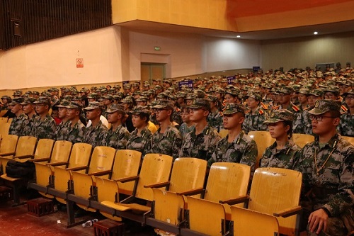 “忘战必危,忘战必亡国。”傅早霞强调军训的重要性——加强国防教育,全面贯彻党的教育方针。通过举例某高校18级新生不正当言论带来的负面影响,他提醒新生们要提高自身思想政治觉悟,拥护祖国统一,坚信“有国才有家,有家才有爱”,家国一体。