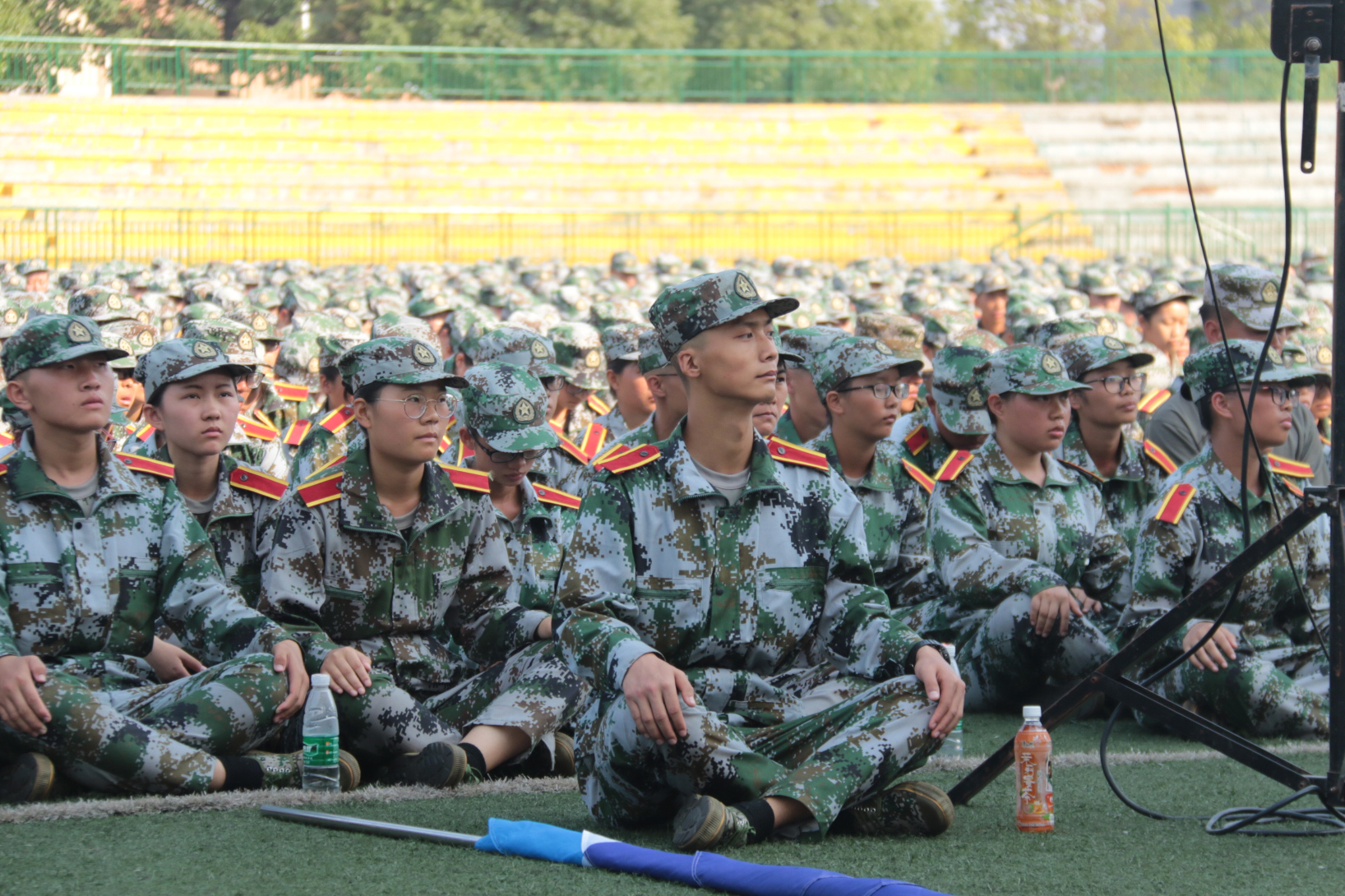 最后新生由对应教官带往相应场地讲评收操,至此入学教育专题报告会圆满结束。