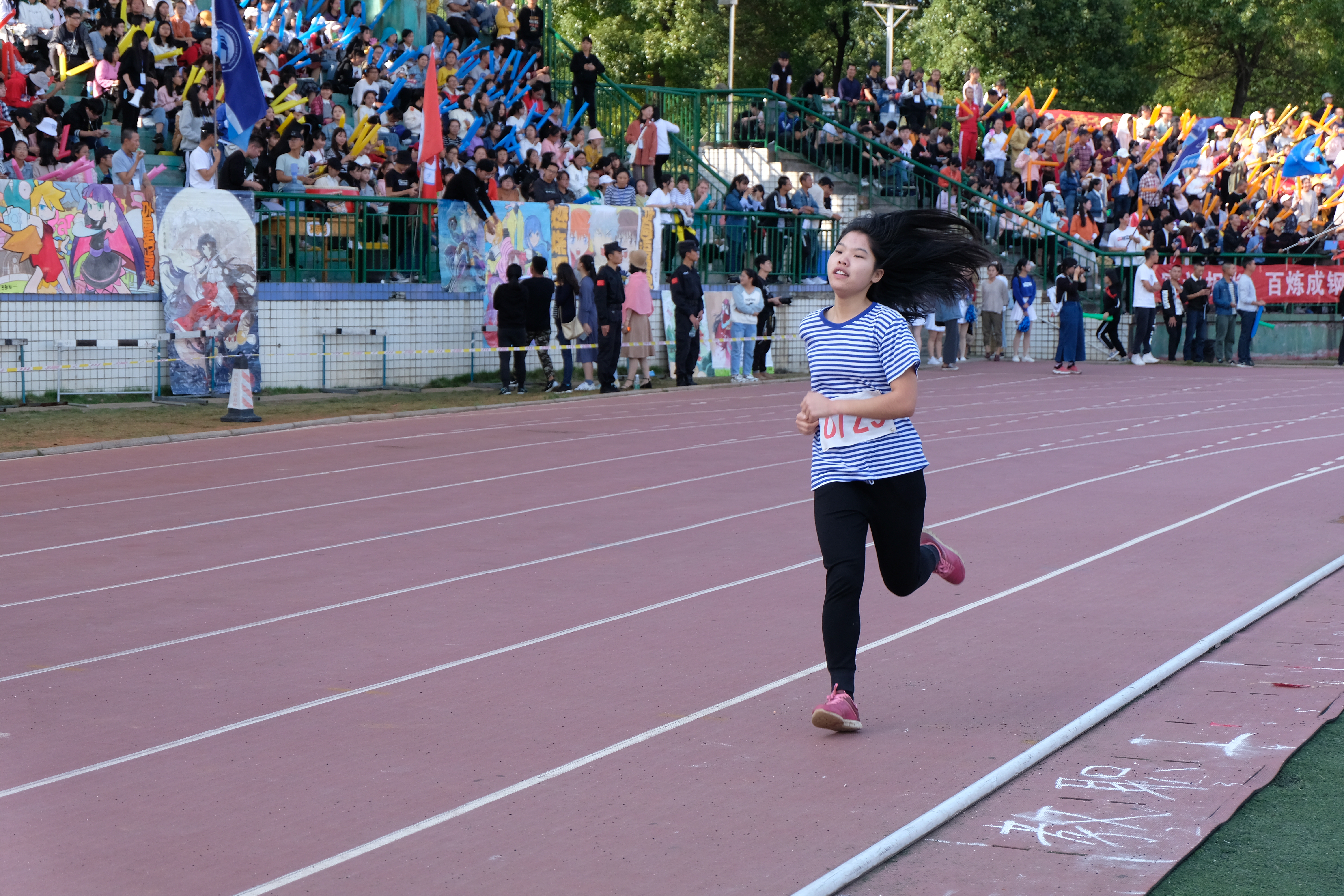 铿锵玫瑰,不惧烈阳,不畏风雨。首先进行的是女子1500米的预决赛。“各就各位!”、“呯!”,秒表一按,枪声一响,一起,一跃,运动健儿们瞬间如奔腾的马儿,在赛场上驰骋。“yl23455永利,加油!yl23455永利,加油!”观众台上,呼喊声,雷鼓声,呜呜号声,尖长哨声,如长江巨浪,一阵高过一阵。缤纷彩旗,橙蓝气棒,是为商院的青春激情。再看男子组的比赛,听,他们的呼吸声低沉却有力,看,他们快而稳的节奏。1500米的征途磨的是意志,练的是坚持!在最后的冲刺阶段,运动员们一鼓作气,冲向终点。