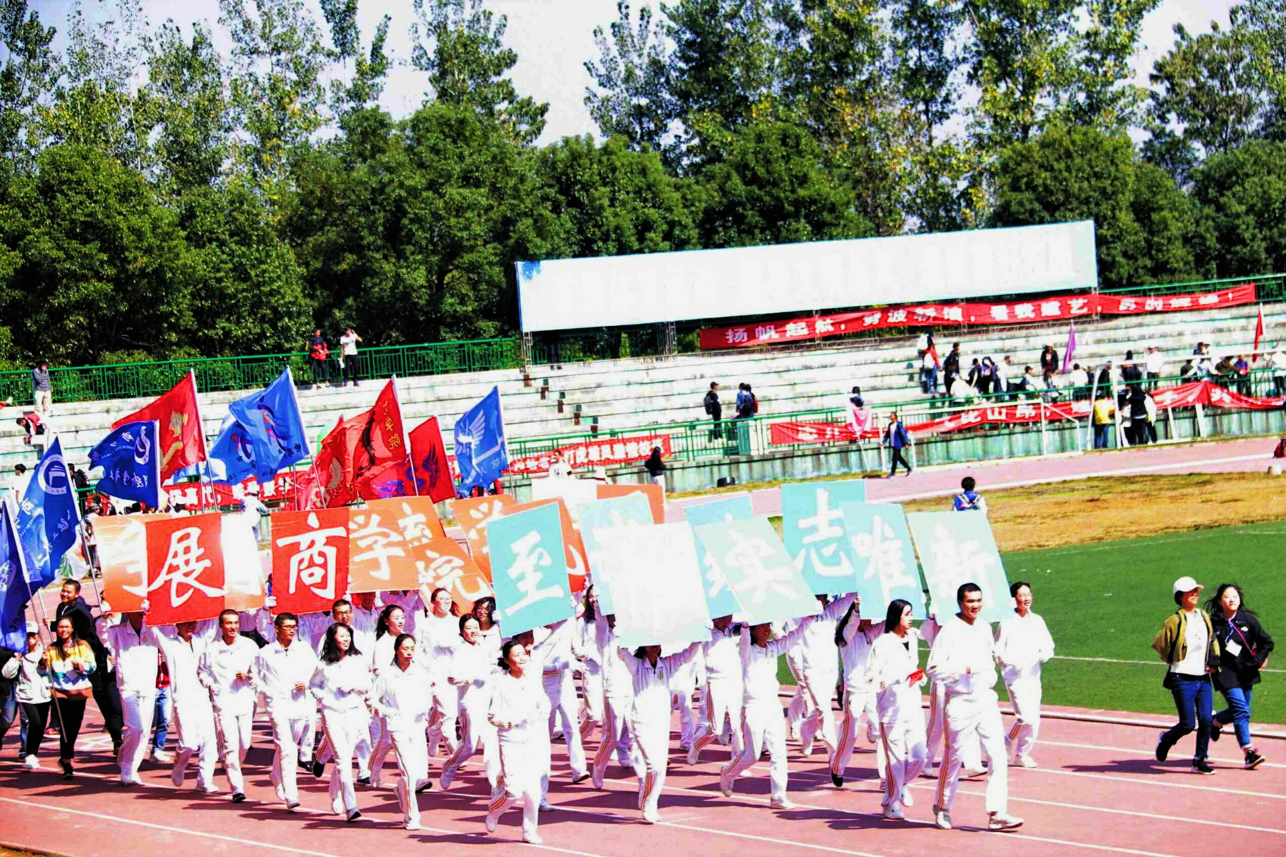 值得一提的是,闭幕式结束之后,yl23455永利方阵队以及院旗班旗举旗手列队喊着“科大最强yl23455永利,有谁不服明年见”的口号绕田径场一圈,借本次校运会之东风,展现了商院的独特风采。
