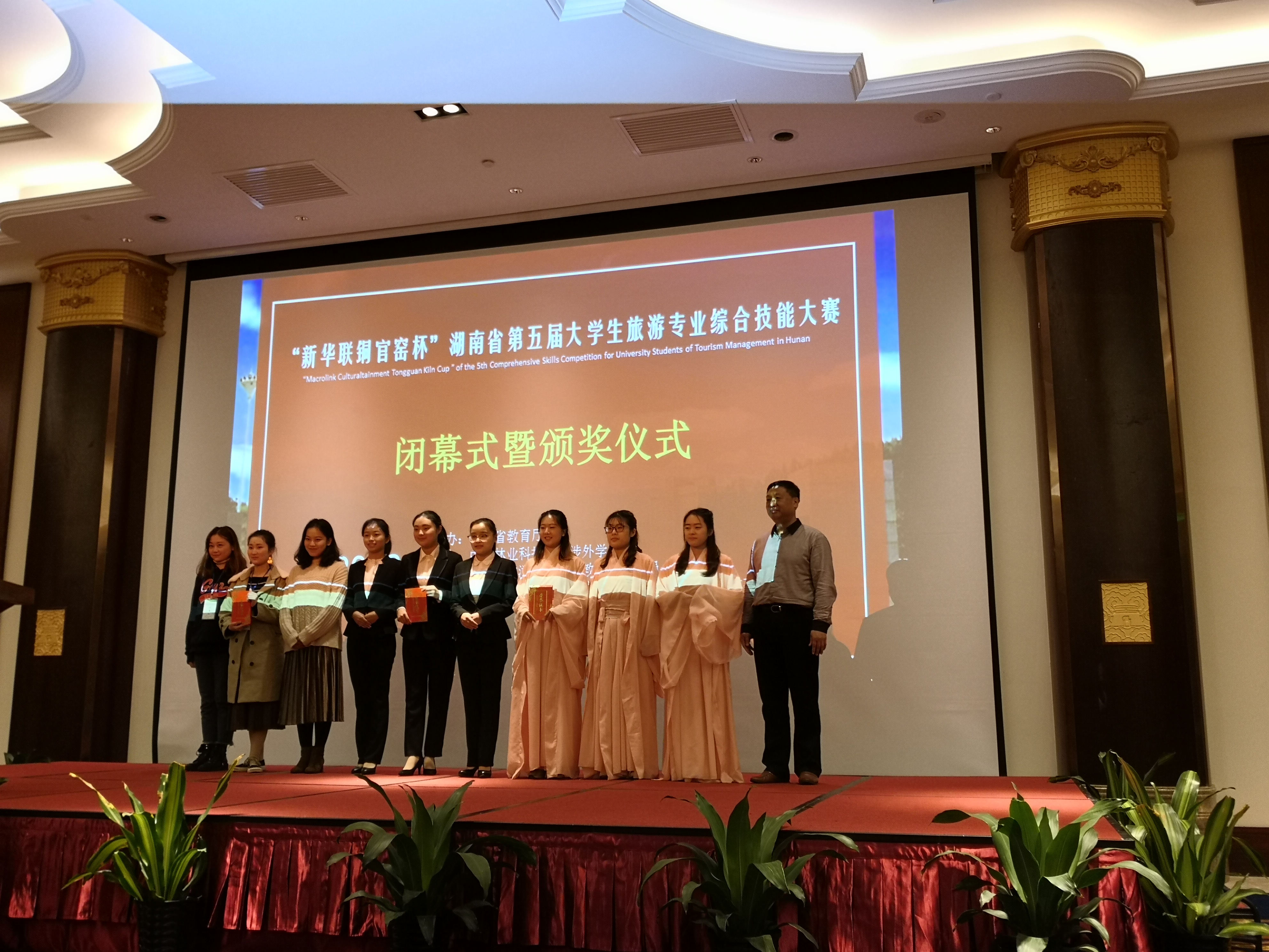 11月13日-14日,湖南省第五届老员工旅游专业综合技能大赛总决赛在长沙新华联铜官窑古镇圆满落幕。yl23455永利集团五支队伍在yl23455永利副经理邓淇中、旅游管理系主任王慧琴及任课教师潘芬萍等老师指导下参加比赛,并取得了优异成绩,分别荣获一等奖一项,三等奖四项。其中,彭诗尧、郑旭秀、胡慧珍等同学作品“陶越千年,到瓷一游”获大赛一等奖。