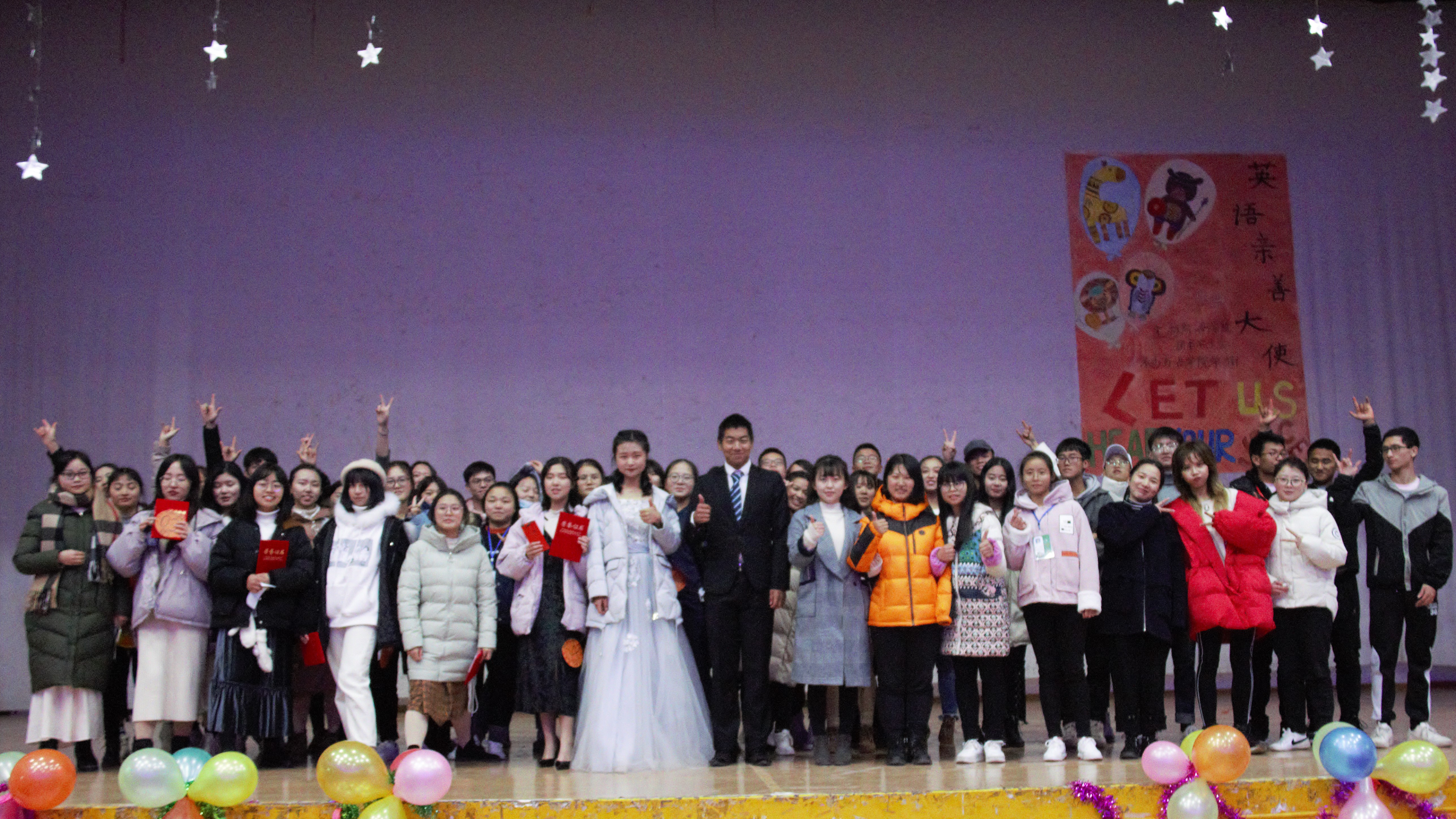 活动现场上挂满的紫色灯串,舞台背景墙上贴着的可爱图画,将比赛现场烘托得温馨有趣。伴随着学习部干事们的开场舞,现场气氛逐渐活跃起来。