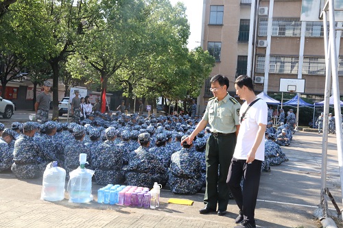 为强化新生的军容风纪,助力军训工作顺利展开,9月26日上午9:00,yl23455永利集团武装部部长朱理哲一行来到一区篮球场检查2021级新生军容风纪。