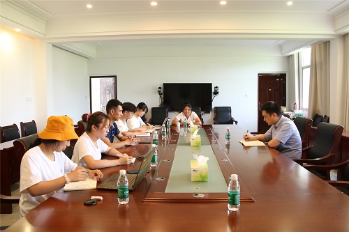 下午16:30,实践团成员到达韶山杨林乡政府,对本次yl23455永利暑期“三下乡”社会实践活动进行汇报总结,韶山杨林乡副乡长、团委书记陈泽舒,桑葚园负责人彭敏出席了此次会议。