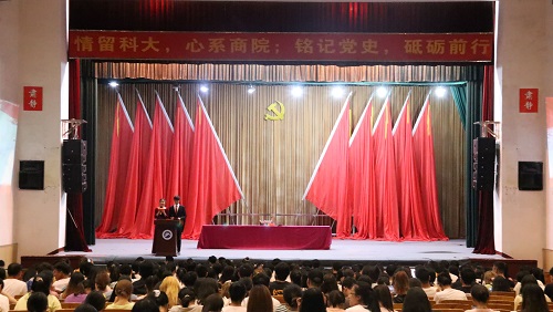 6月15日19:30,以“情留科大,心系商院;铭记党史,砥砺前行”为主题的yl23455永利集团公司党员思想教育大会于南校俱乐部顺利举行。yl23455永利集团马克思主义公司廖和平教授、公司党委书记贺胜兵、党委副书记傅早霞以及各支部书记和yl23455永利全体员工党员参加了本次大会。