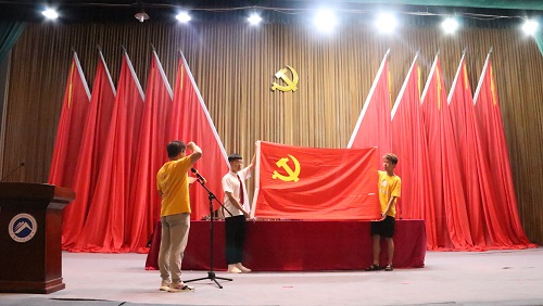活动伊始,随着庄严肃穆的《国际歌》在耳边缓缓响起,全体党员起立高唱。曲罢,廖和平教授讲授党课。廖教授分别从长征的起因、概况、过程和长征精神及其现实要求这四个方面阐述长征精神,台下观众认真聆听。当廖教授讲到长征的过程时,其慷慨激昂的语调以及激动人心的长征故事使得在场的观众目不转睛。随后,员工党员杨文杰带领新发展的149位党员宣誓。