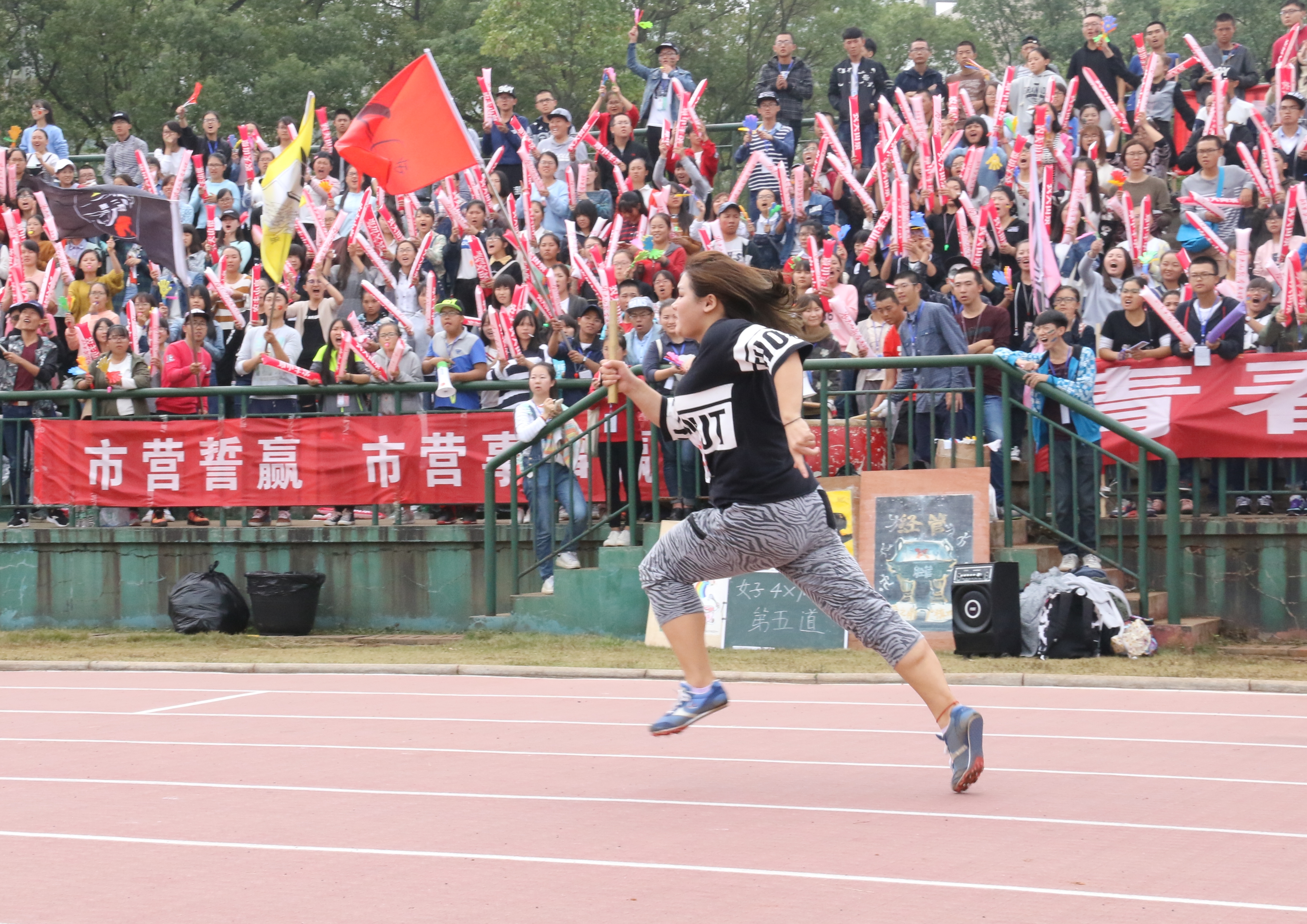 10月21日11时,男女4x100接力赛决赛在急促而紧密的鼓声与观众热烈欢呼声中拉开了序幕。公司男子陈晔、朵伟、王高飞、李杰,女子谢亚芬、冯杰、李林杰、罗泽慧共八位运动员参加了此次比赛。“东风吹!战鼓擂!我们经管怕过谁!”观众们用整齐的口号,喧天的鼓声,欢送经管健儿决战赛场。