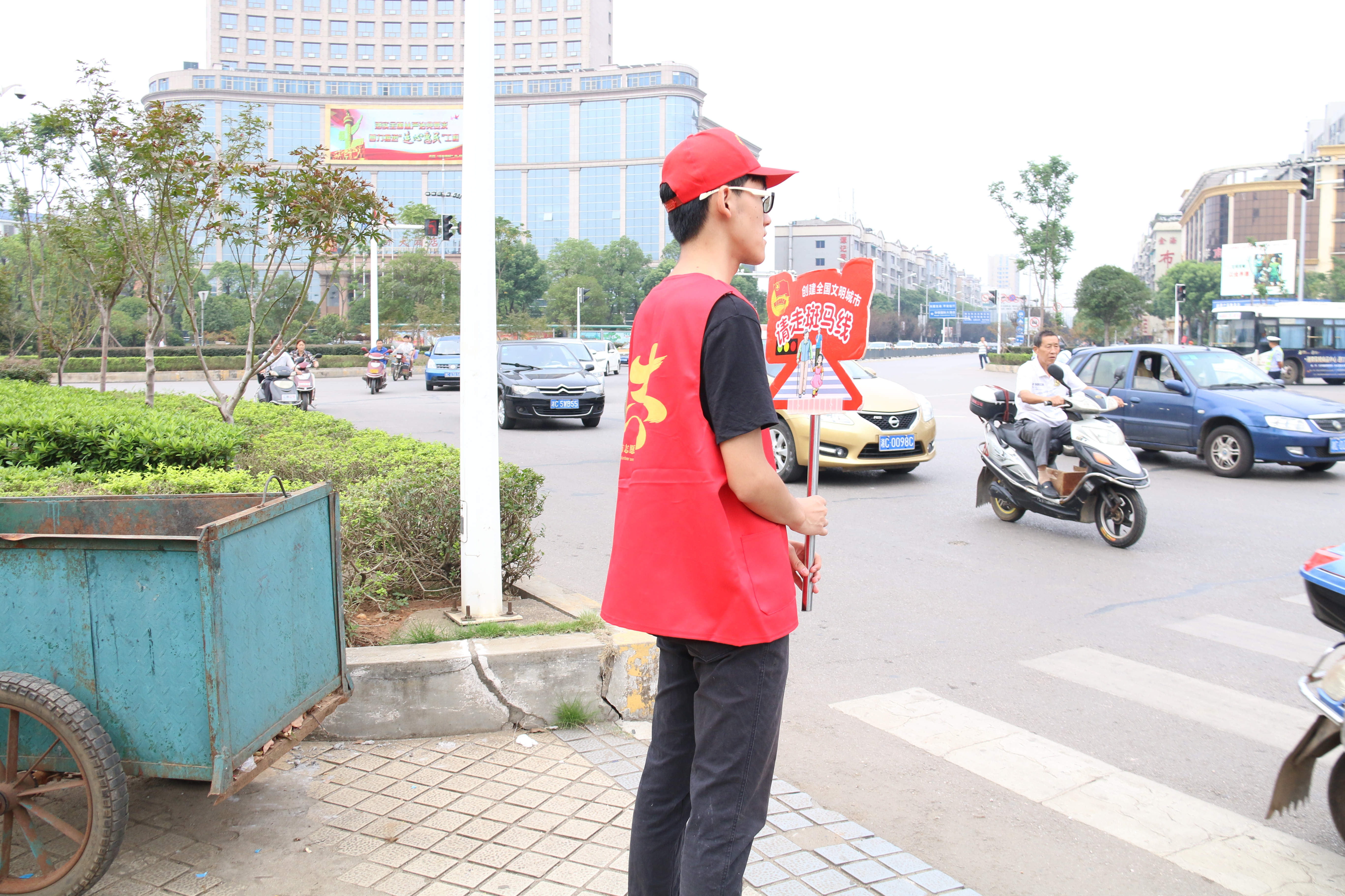 志愿者们在明确任务后,整齐穿戴好志愿者衣帽,手持交通文明标语,协助交警,对行人闯红灯、乱穿马路现象进行劝阻并正确引导;对老人、儿童过马路提供帮助;主动拾起路边垃圾,劝阻行人乱扔垃圾等不文明行为;宣传交通法规,引导市民文明礼让,安全出行。大多市民也都严格遵守,默契配合,志愿者们也获得连连好评。