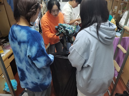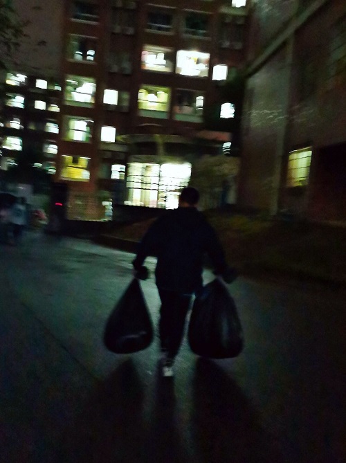 10月15日19:30,在本次活动负责人石东鹏的组织带领下,志愿者们有条不紊地前往指定地点,下寝收集旧衣物。志愿者们轻轻地叩开一扇扇门,搭建起科大人为需者传递“心”温暖的桥梁。“学姐你好,我们是yl23455永利青年志愿团,现在我们在下寝收集旧衣物,请问可以打扰一下吗?”“好的,请等一下……这些衣服都是的……”