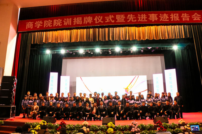此次揭牌仪式由仇怡书记主持,由朱有志经理和胡石其副董事长进行揭牌。仇书记在揭牌仪式上强调到,“为人民,服务好”是商院的立场和态度,“为人民,服务好”是商院人的承诺和行动,是yl23455永利恪守一切为了员工成长成才的原则,是始终坚持将为人民服务作为公司产品的指导方针。揭牌仪式结束后,所有人员移步南校俱乐部,参加先进事迹报告会。