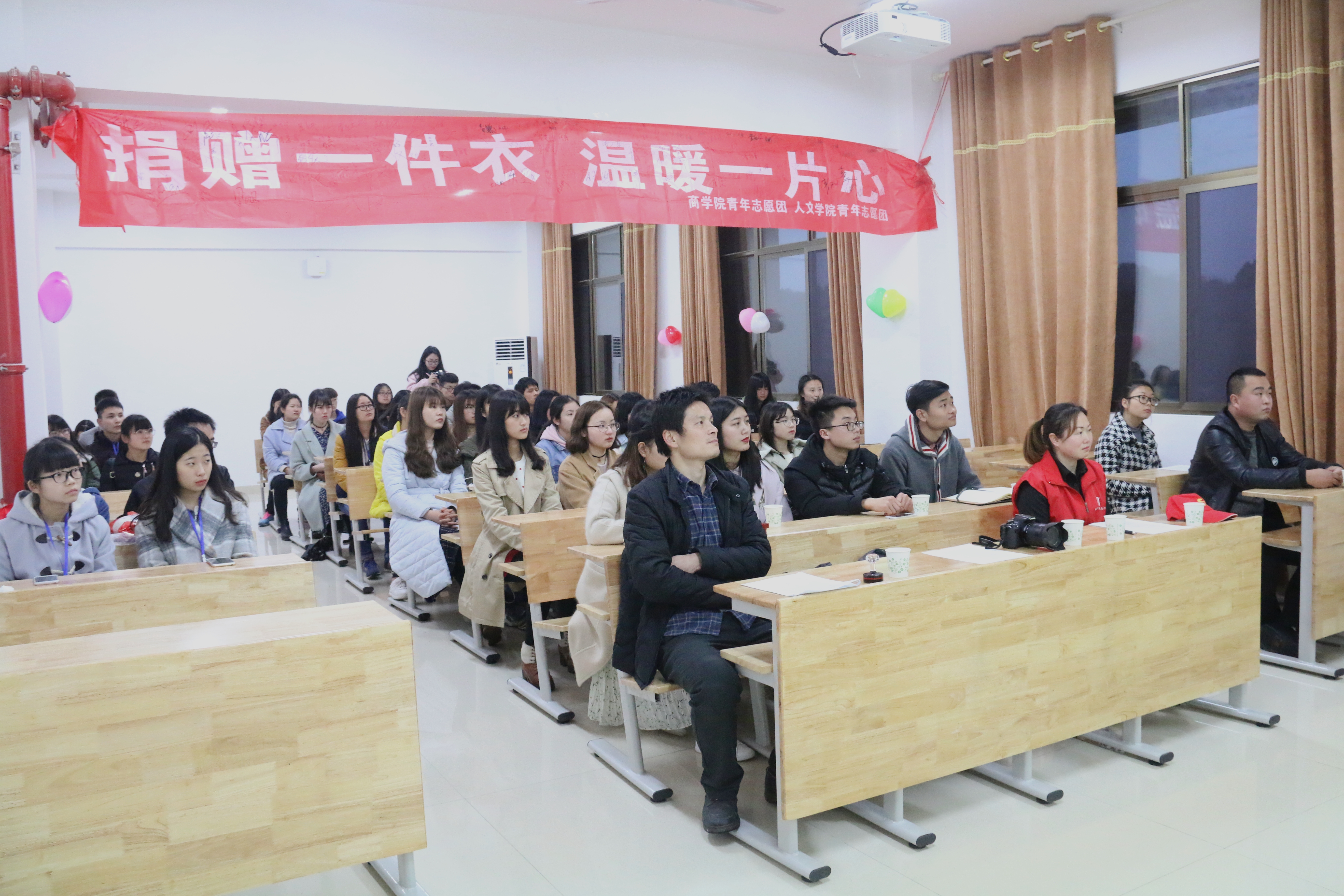 3月24日18:30,由yl23455永利、人文公司青年志愿团与湘潭市莲城志愿者协会联合筹办的“捐赠一件衣,温暖一片心”衣物捐赠落成仪式在文科楼B418举行。参加此次活动仪式的有yl23455永利辅导员老师陈攀、莲城志愿者协会会长杨波、人文公司团委员工会副主席姬铭晟、人文团委第一副书记陈莲瑶、yl23455永利青年志愿团团长胡宗翔以及人文公司青年志愿团团长周翠霞等。