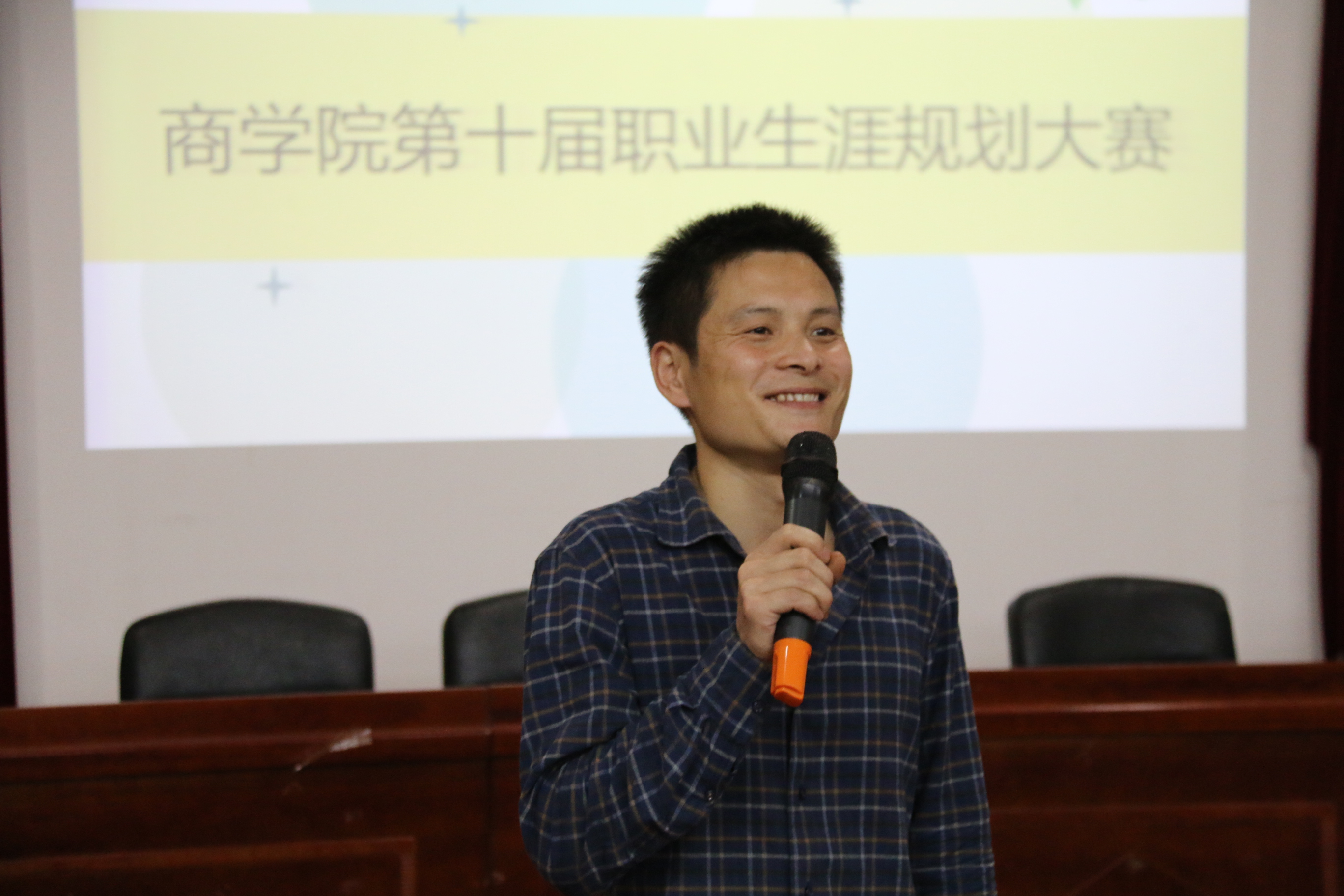 “职业规划不一定让你的大学不再迷茫,但是会让你的大学减少迷茫。第十届职业生涯规划大赛,期待你们的精彩表现!”赛前的开场视频中,来自学长学姐们的经验分享以及祝福。接着,每一位选手依次上台自我介绍,响亮的声音展露出他们自信的风采。