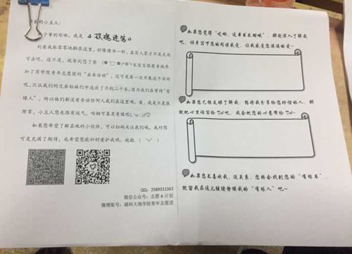 活动当天,志愿者将少量书籍藏于第五教学楼内,读者看到感兴趣的书籍可以带走阅读并留言,也可将书籍放置于任意地点,供其他读者寻找并阅读。在享受阅读的同时,以书会友,以书交友。