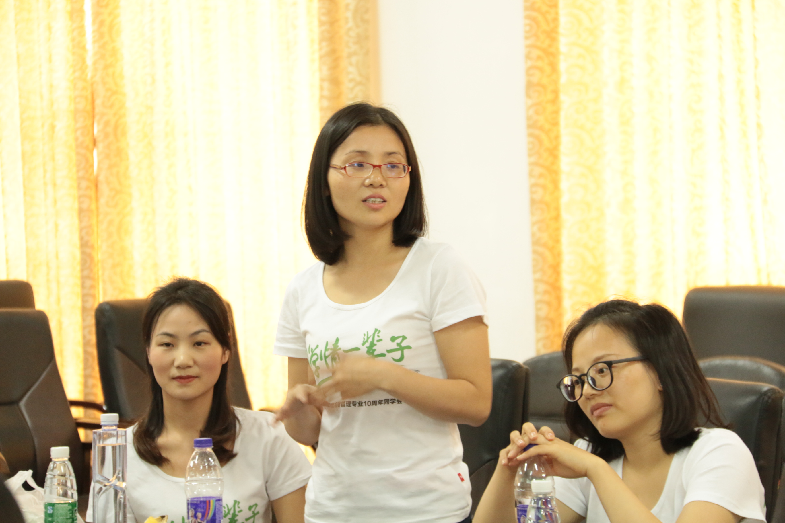 10:30,员工们穿着印着“青春不散场,同学情一辈子”字样的T恤,陆陆续续走进会议室。他们热情地跟同学打着招呼,感叹各自的变化,氛围十分轻松愉快。简单的介绍欢迎之后,员工们开始发言,他们概括了这十年来的经历和成长,成功或失败,顺利或坎坷,也对现在的生活现状进行了大致的讲述,分享了一路来自己的心路旅程。他们也说道:“没有经历过困难和挫折,就不会有现在更强大更优秀的自己。”