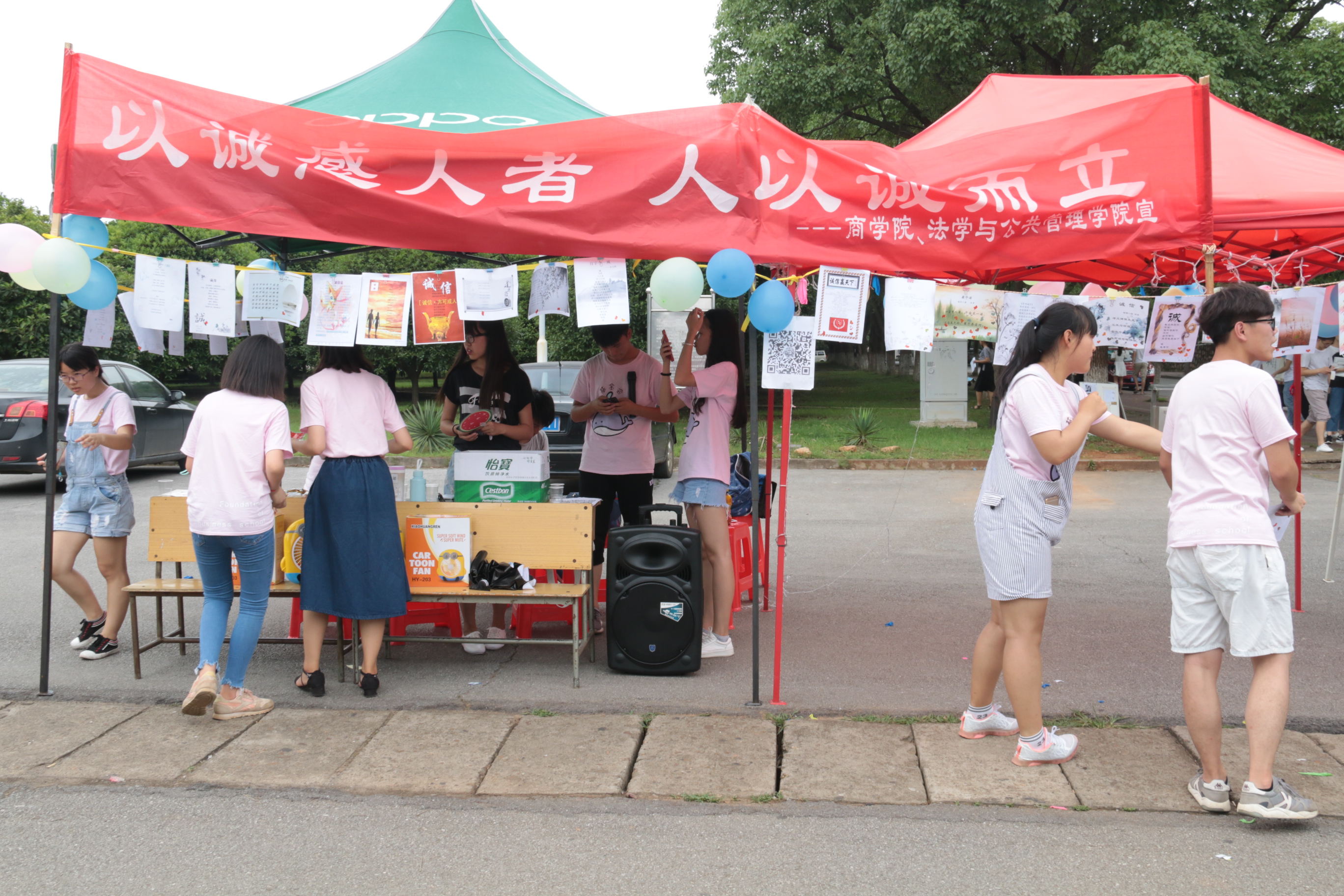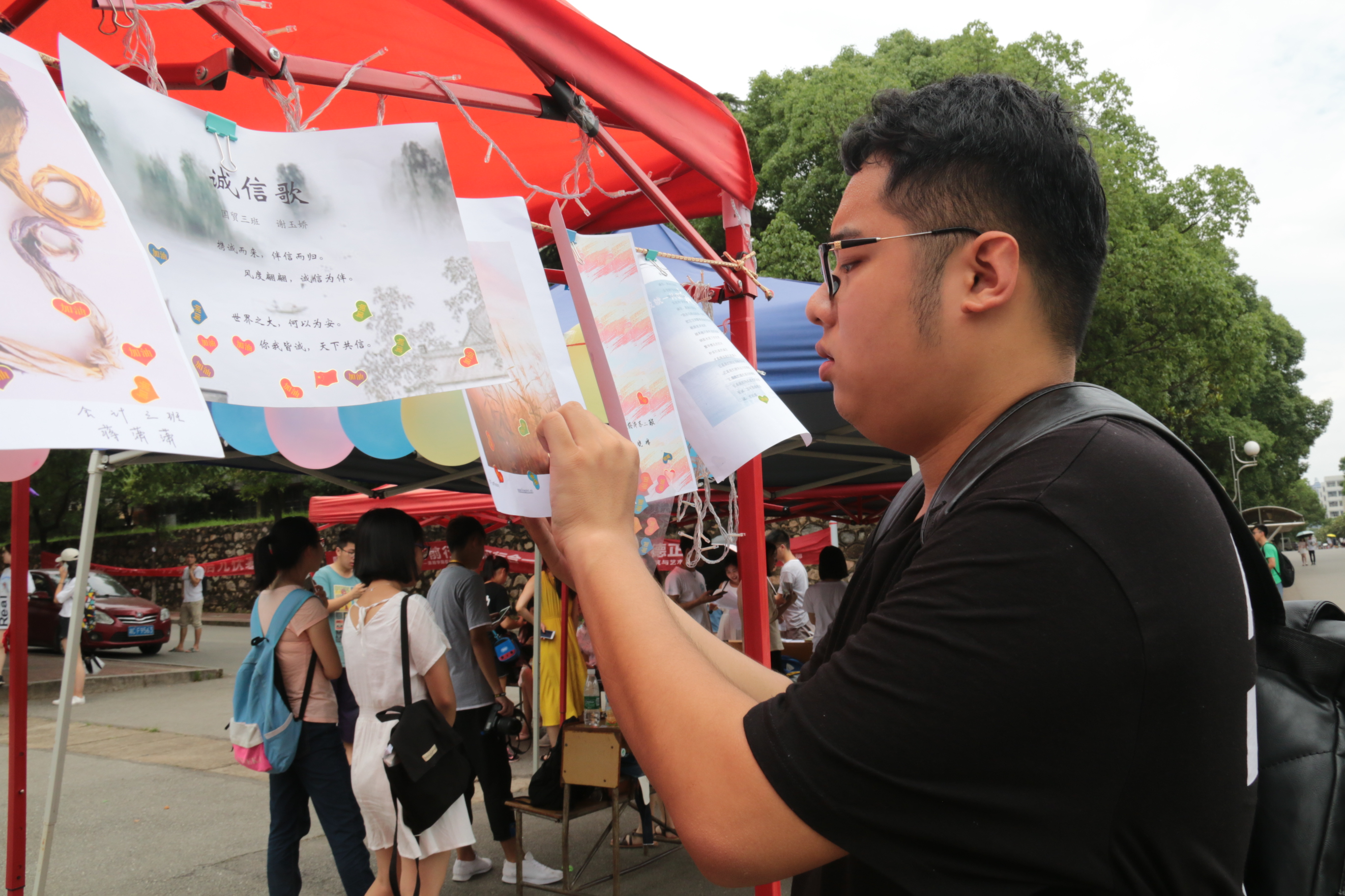 诗里咏诚,歌里颂信。6月9日,由yl23455永利和法学与公共管理公司联合承办的2017诚信诗歌创作大赛于八区食堂和美食广场摆点进行作品展示。本次活动首先通过了宣传收集了大量作品,最终甄选出30份优秀作品,再通过线上和线下的投票方式评选出一、二、三等奖共10名。公司党委副书记傅早霞以及全体辅导员也亲临现场参与其中并与工作人员合影留念。“这些作品都是来自同学们的原创,非常好。”傅书记对活动做出很高的评价,夸赞比赛中收集的作品都是原创非常有意义。老师们也纷纷为作品投票,表示出对活动的大力认可与支持。