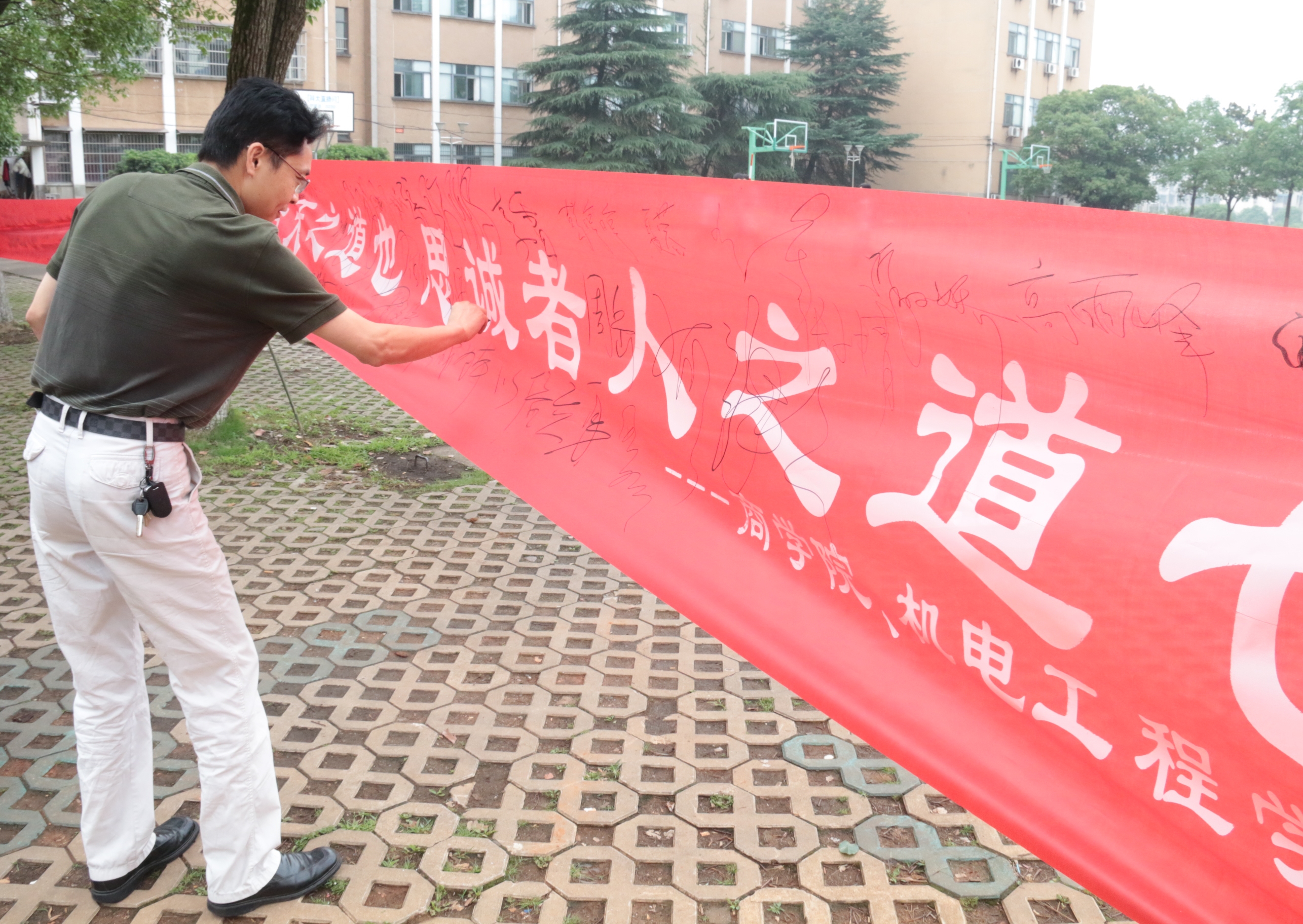 傅书记在这次活动中也做了一次参与者,在横幅上签上了自己的名字,各辅导员也纷纷上前签名。傅书记了解了一些诚信贷款的情况,并强调诚信贷款的重要性,他表示:“诚信宣传活动是有必要的,不诚信的举动影响终身。”