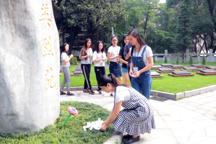 最后,全体党员在烈士墓区对英勇无畏的烈士们进献白花,并有序的瞻仰了英烈苑之碑。在纪念碑下,大家静心感受着先烈们的革命精神,追思革命先烈的丰功伟绩,寄托着对烈士的崇敬与哀思。