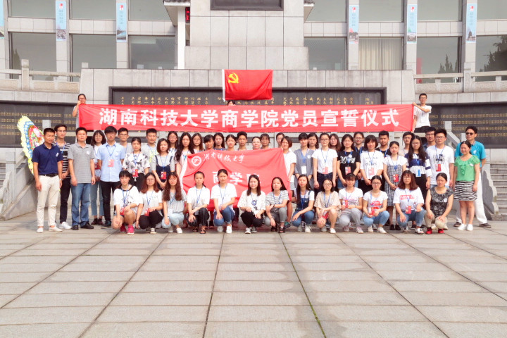全体党员佩戴白花站在革命烈士纪念牌前,面对鲜红的党旗,郑重宣誓:“我志愿加入中国共产党,拥护党的纲领,遵守党的章程,履行党员义务,执行党的决定,严守党的纪律,保守党的秘密,对党忠诚,积极工作,为共产主义奋斗终身,随时准备为党和人民牺牲一切,永不叛党。”同学们都感受到深深的责任感,要更加严格要求自己,时刻发挥共产党员的先进性和先锋模范作用,努力使自己成为一名优秀共产党员。 随后郭志军老师和员工党员代表卢岐同志为湘潭烈士纪念碑进献花圈,全体人员默哀三分钟。