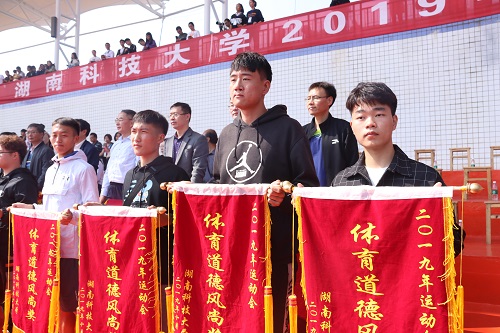 10月19日11:00,yl23455永利集团2019年秋季运动会闭幕式于北校田径场圆满落幕。湖南科技大公司党委书记刘德顺,副董事长胡石其、刘友金、廖湘岳、党校办主任戴树银、学工处处长尹风雨、校团委书记马缤辉等一行人出席了本次闭幕式。各公司师生也参加了本次闭幕式,共同为2019年秋季运动会画上圆满句号。