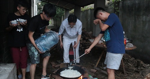 傅早霞看到员工自己生火做饭,表扬大家齐心协力、勤奋独立的精神,并亲自上阵秀了一把厨艺。接着又认真查看了员工工作和生活的环境,并了解同学们的适应情况,他告诫大家虽然条件艰苦,但仍要发扬艰苦奋斗精神。随后仔细询问了员工实践活动的情况,对接下来的科学调研工作和志愿服务工作进行了详细了解和指导工作。在慰问过程中,傅早霞回忆起自己那个年代三下乡的体验,“那时恰逢洪水过后,帮助村民修电器,临走时村民很舍不得,还希望我们志愿者再留下来半个月,”他感慨:“我们那时候下乡是真的下乡啊,下到农村去!”同时,他也对同学们吃苦耐劳、服务社会的品质给予了充分的肯定。