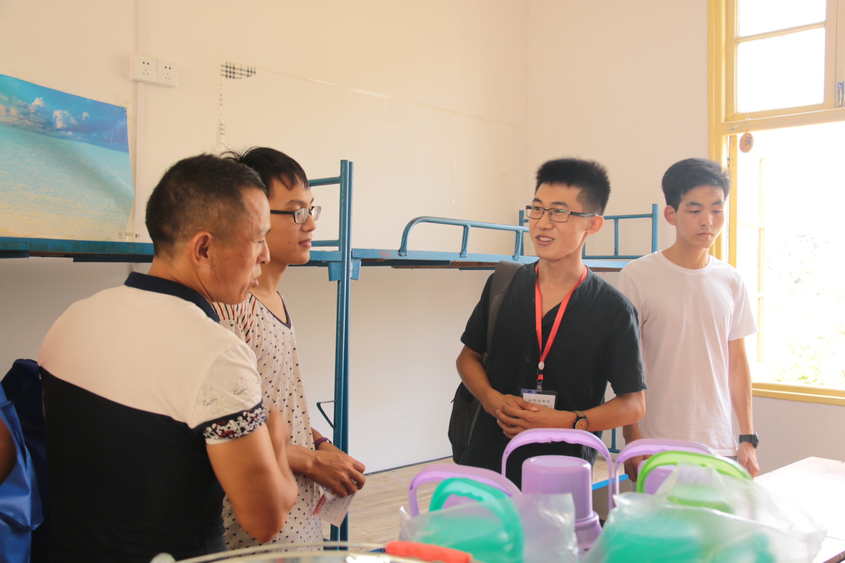 宿舍出现了越来越多新生的忙碌身影,他们和随同前来的家长一起清理宿舍。有的新生在洗床单被套,有的父亲在帮忙铺床,有的母亲正拿着抹布擦桌子,还有替姐姐拿行李的弟弟。在二区宿舍,一位新生吸引了大家的注意。来自浙江杭州的王寅此次是独自前来公司,现在已经是2017级国际经济与贸易一班的一份子,到达公司后的开学准备工作全由自己完成。当被问到 “你对本校的第一印象是什么?”这一问题,他笑着回答:“来到这个公司我很幸运,我觉得科大的文化底蕴非常深厚,而且公司环境挺好的。”他说,如果公司里有毛泽东的雕像,一定要拍照片分享给以前的同学。