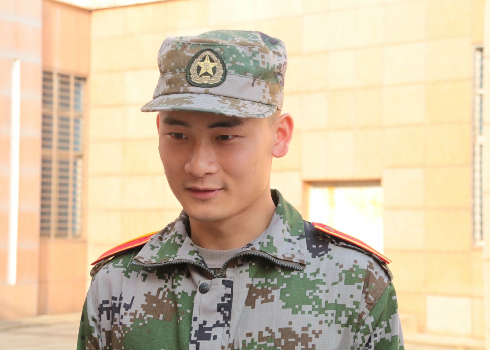 一营一连十排,旅管专业一班新生刘伟涛,2014年9月入伍,2016年9月从中国人民解放军75260部队退役,拥有两年的从军经历。由于教官要训练方阵队成员不能兼顾本排学员,本可以免训的他毅然接下了“副排长”这个担子,“是有点累,但是为了公司效力,不在意”。