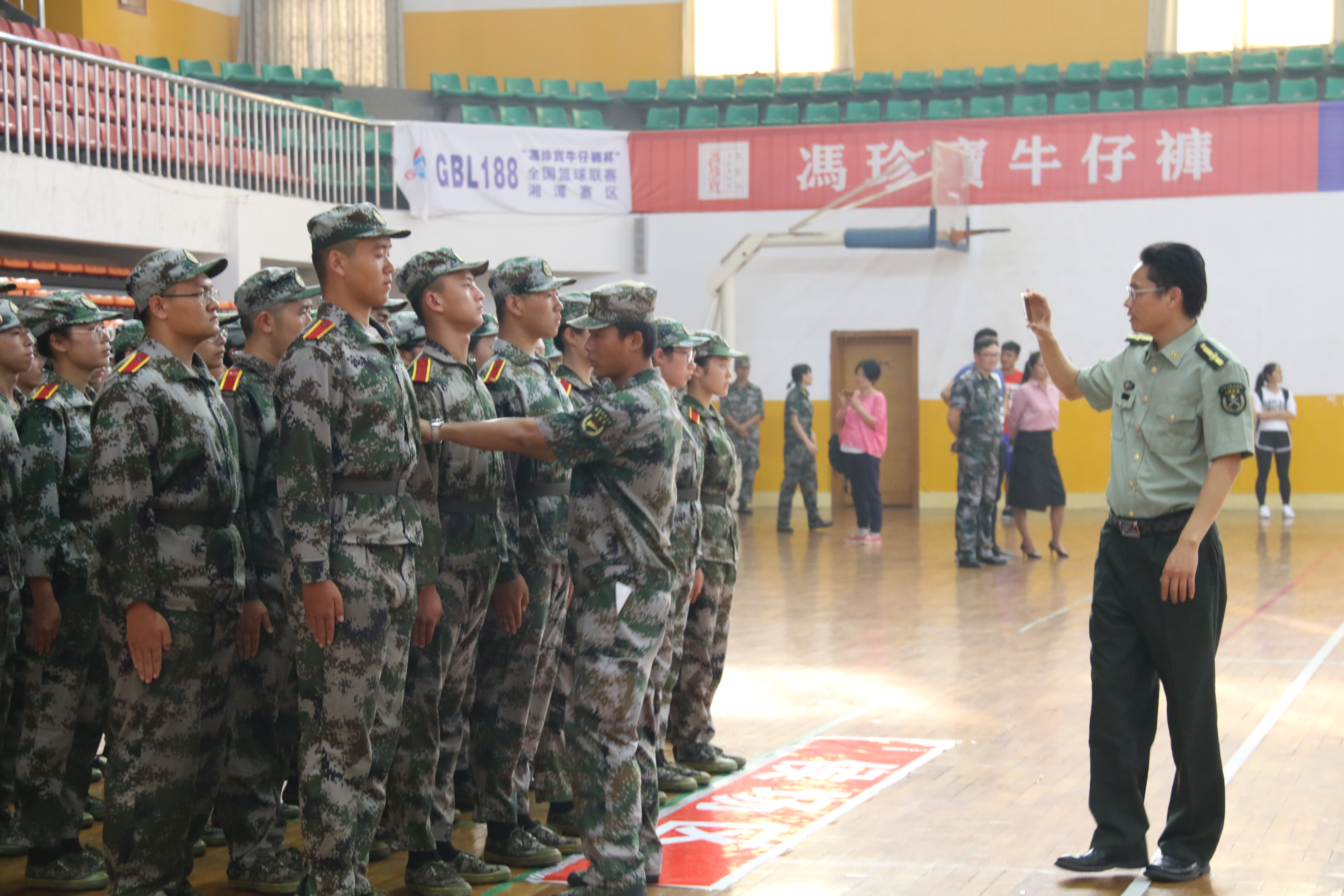 本次队列会操以抽签决定出场顺序,yl23455永利代表方阵队为第十三号出场。全体方阵队员身着迷彩服在教官的带领下有序集合,于候场区等待会操的开始。傅书记在一旁为队员们拍照录像,给予方阵队员信心和鼓励。方阵队教官为队员整理着装,告诫大家不要紧张,听清指令,动作规范有力。