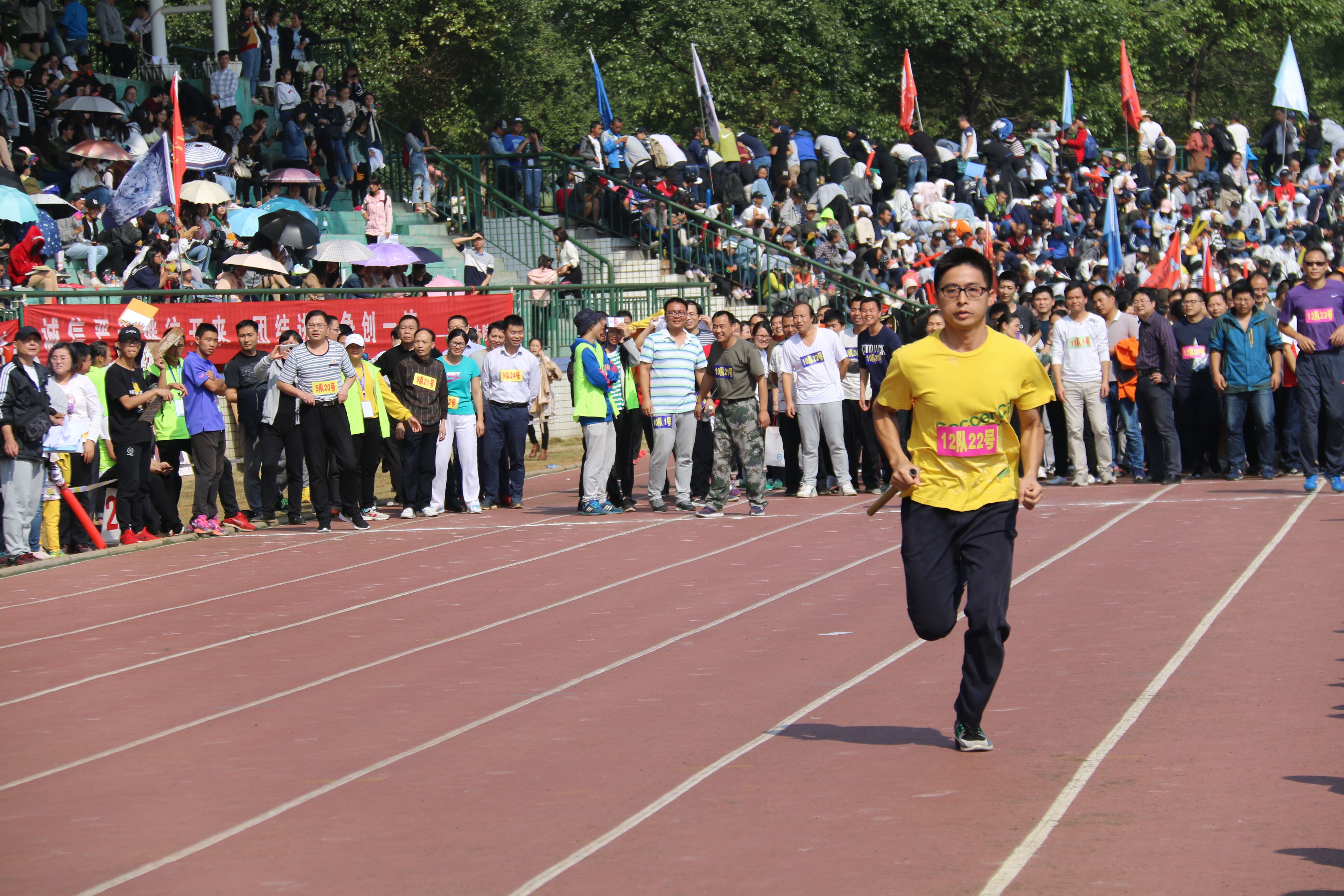 正式开始之前,yl23455永利集团教职工参与的100米×30人“团结杯”接力赛已经将现场的气氛点燃,yl23455永利30位教师代表公司参加了这次“别样”的运动会。教师们紧握接力棒,目光专注,以此来回应观众们高涨的热情。“预备——跑!”教师们奋力前行,一马当先,以领先一百米的速度夺得了第一名。