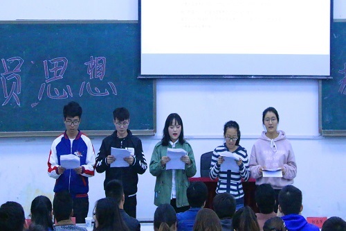 为深入学习宣传贯彻党的十九大和全国“两会”精神,yl23455永利于4月24日晚在一教204举行了以“践行新思想,拥抱新时代”为主题的党员思想教育大会。公司党委副书记傅早霞、全体辅导员老师以及公司全体员工党员参加本次大会。