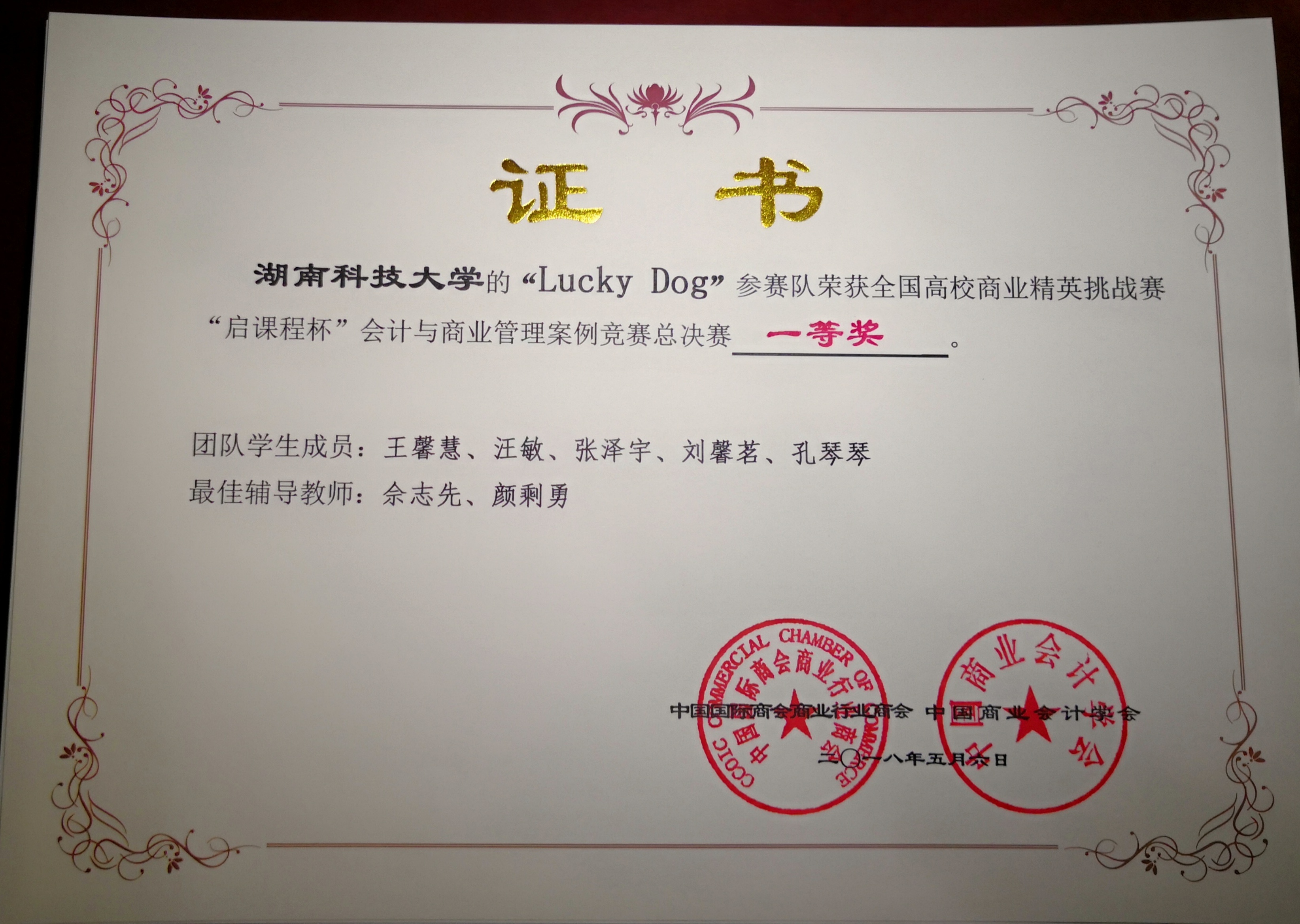 5月4日至6日,2018年全国高校商业精英挑战赛“启课程杯”会计与商业管理案例竞赛总决赛在哈尔滨成功举办,由来自yl23455永利集团yl23455永利的王馨慧、刘馨茗、张泽宇、汪敏、孔琴琴组成的“Lucky Dog队”以作品《让途牛 niu起来》荣获本次大赛一等奖,公司yl23455永利会计系老师佘志先与颜剩勇担任其指导老师。