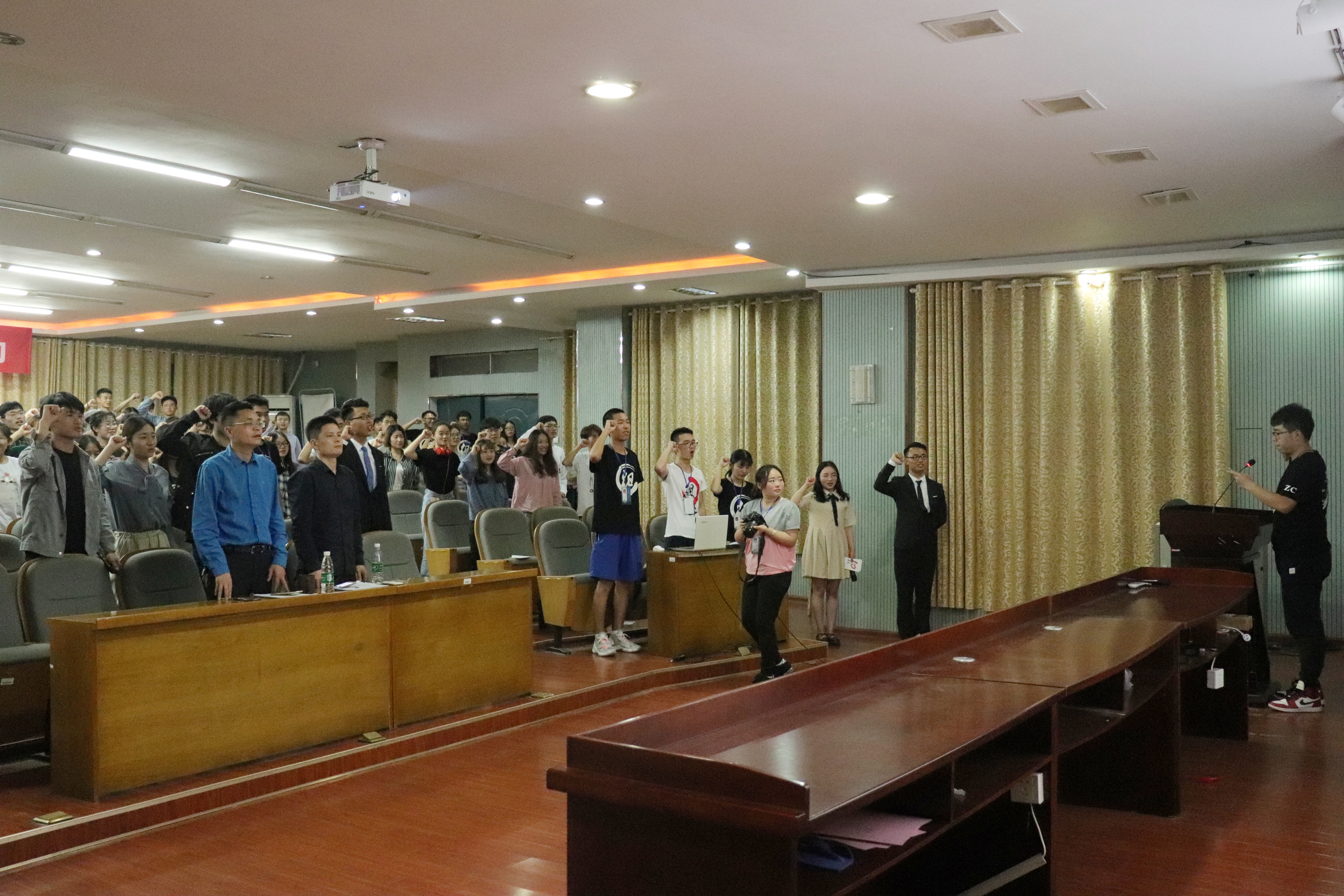 为深入贯彻习近平总书记新时代中国特色社会主义思想和党的十九大精神,并激励全体团员员工继承与发扬“五四”精神,湖南科技老员工yl23455永利团委应团省委公司部和yl23455永利集团校团委要求,于2018年5月6日14:30在三教101组织开展了“高举团旗跟党走,万个支部同宣誓”主题活动,商学公司党委副书记傅早霞、团委书记陈攀及yl23455永利团委正部长及以上干部与会。