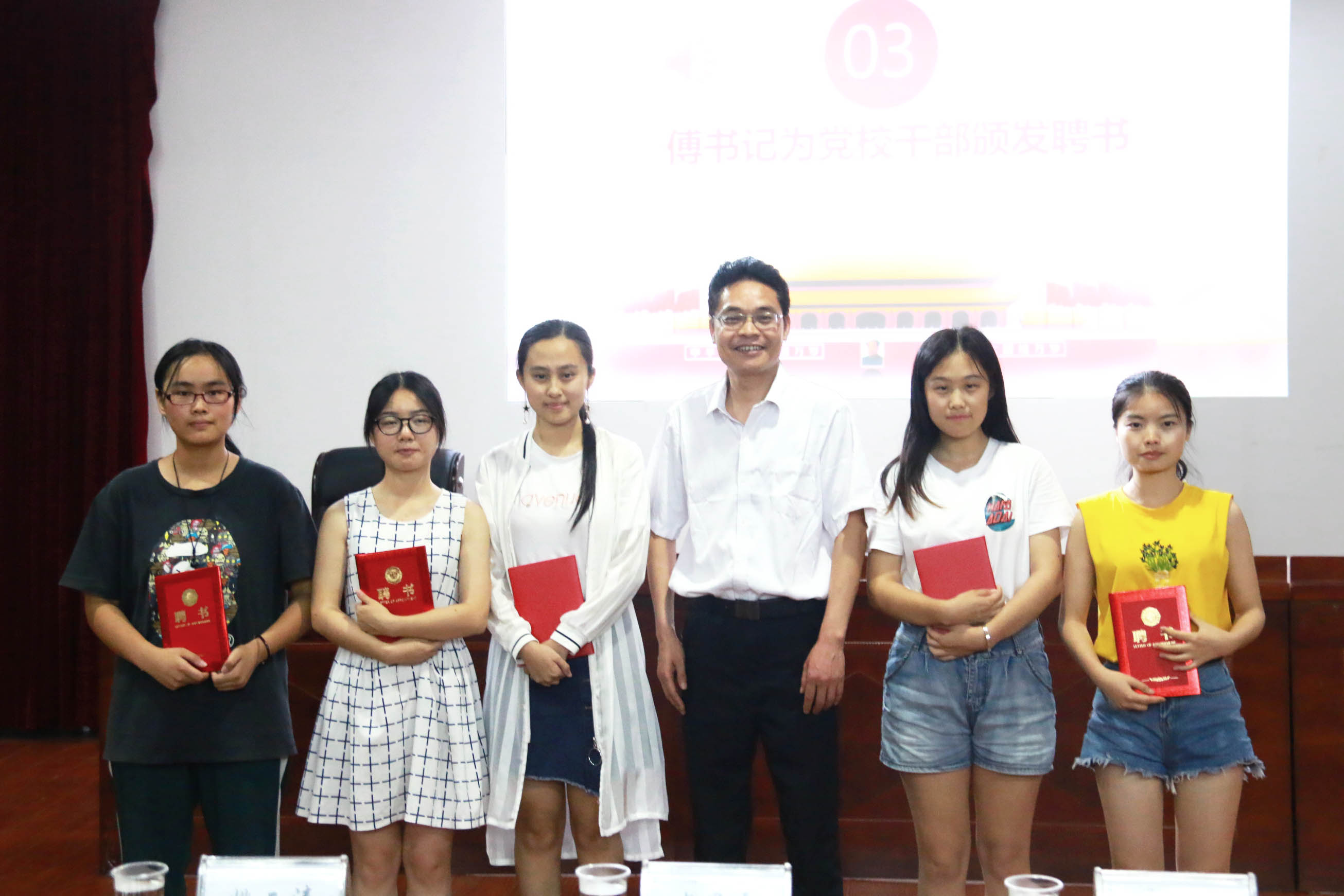 “起来,不愿做奴隶的人们……”在国歌激昂的声音中,大会拉开了帷幕。发现党员培训班班长杨兆国带领新发展预备党员宣誓,党员重温入党誓词,深刻理解入党动机的内涵,端正动机,纯洁思想,以饱满的热情,高涨的精神将讲坛推向高潮。随后观看党建视频,从中国共产党发展的新生期、奋斗期、探索期、逐步迈向成熟期四个部分逐一介绍,让全体党员深刻认识共产党从苦难走向辉煌的艰辛历程,积极端正党员思想,为党和人民服务。大会期间,傅早霞书记为党校干部颁发聘书,激励党员严格要求自身,发挥模范带头作用。